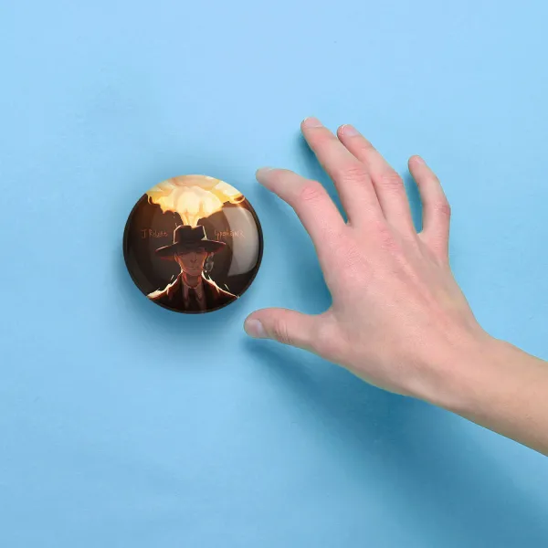 آینه های جیبی اوپنهایمر Oppenheimer خندالو دایره ای به قطر 7.5 سانتی متر می باشد که نه خیلی بزرگ و غیر قابل استفاده در کیف آرایشی ست و نه خیلی کوچک که تصویر خاصی در آن مشاهده نشود. سایزی استاندارد و کارآمد دارد و مناسب قرار گیری در کیف لوازم آرایش و کیف های کوچک دستی نیز هست.