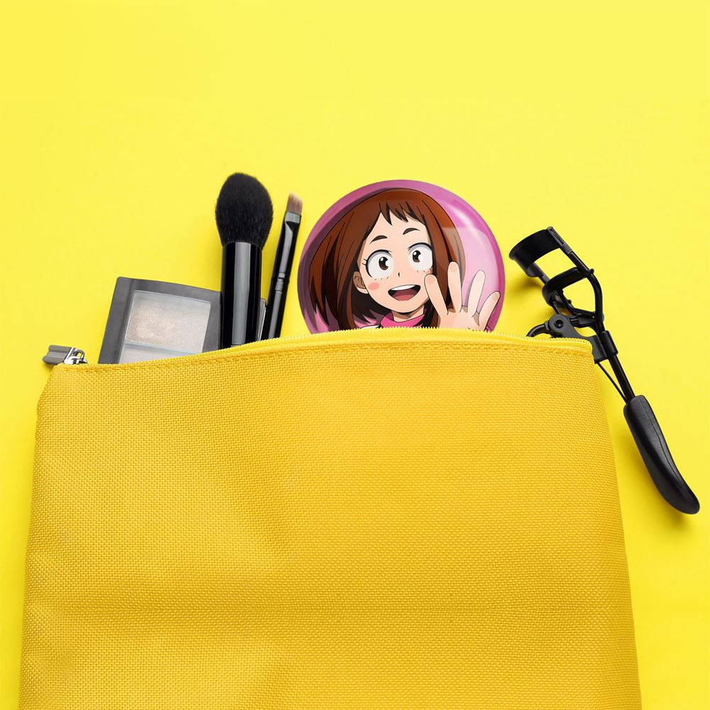 آینه های جیبی اوچاکو اوراراکا انیمه آکادمی قهرمان من خندالو دایره ای به قطر 7.5 سانتی متر می باشد که نه خیلی بزرگ و غیر قابل استفاده در کیف آرایشی ست و نه خیلی کوچک که تصویر خاصی در آن مشاهده نشود. سایزی استاندارد و کارآمد دارد و مناسب قرار گیری در کیف لوازم آرایش و کیف های کوچک دستی نیز هست. بدنه ی آینه جیبی اوچاکو اوراراکا انیمه آکادمی قهرمان من در قسمتی که آینه را در بر گرفته فلزی بوده و ظاهر براق و بسیار زیبایی دارد. چاپ طرح در پشت آینه بوسیله چاپگرهای دیجیتال شش رنگ با شفافیت و کیفیتی مثال زدنی انجام گرفته و با روکش لمینت حرارتی پوشیده شده که در مقابل آسیب و خط و خش مقاوم بوده و کیفیت بالایی دارد. آینه های جیبی اوچاکو اوراراکا انیمه آکادمی قهرمان من خندالو با تنوع طرحی بسیار بالا، سلیقه هر نوع مخاطبی را تامین میکند.
