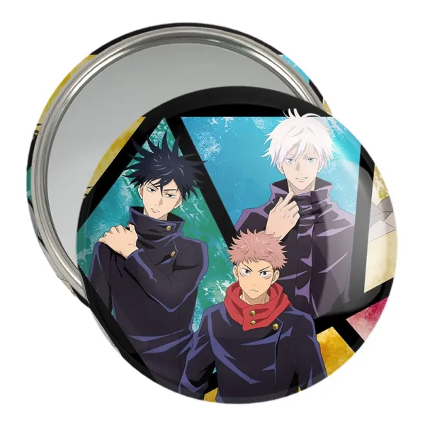 آینه های جیبی ایتادوری و گوجو و مگومی انیمه جوجوتسو کایزن خندالو دایره ای به قطر 7.5 سانتی متر می باشد که نه خیلی بزرگ و غیر قابل استفاده در کیف آرایشی ست و نه خیلی کوچک که تصویر خاصی در آن مشاهده نشود. سایزی استاندارد و کارآمد دارد و مناسب قرار گیری در کیف لوازم آرایش و کیف های کوچک دستی نیز هست. بدنه ی آینه جیبی ایتادوری و گوجو و مگومی انیمه جوجوتسو کایزن در قسمتی که آینه را در بر گرفته فلزی بوده و ظاهر براق و بسیار زیبایی دارد. چاپ طرح در پشت آینه بوسیله چاپگرهای دیجیتال شش رنگ با شفافیت و کیفیتی مثال زدنی انجام گرفته و با روکش لمینت حرارتی پوشیده شده که در مقابل آسیب و خط و خش مقاوم بوده و کیفیت بالایی دارد. آینه های جیبی ایتادوری و گوجو و مگومی انیمه جوجوتسو کایزن خندالو با تنوع طرحی بسیار بالا، سلیقه هر نوع مخاطبی را تامین میکند.