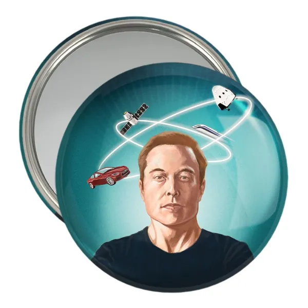 آینه های جیبی ایلان ماسک Elon Musk خندالو دایره ای به قطر 7.5 سانتی متر می باشد که نه خیلی بزرگ و غیر قابل استفاده در کیف آرایشی ست و نه خیلی کوچک که تصویر خاصی در آن مشاهده نشود. سایزی استاندارد و کارآمد دارد و مناسب قرار گیری در کیف لوازم آرایش و کیف های کوچک دستی نیز هست.
