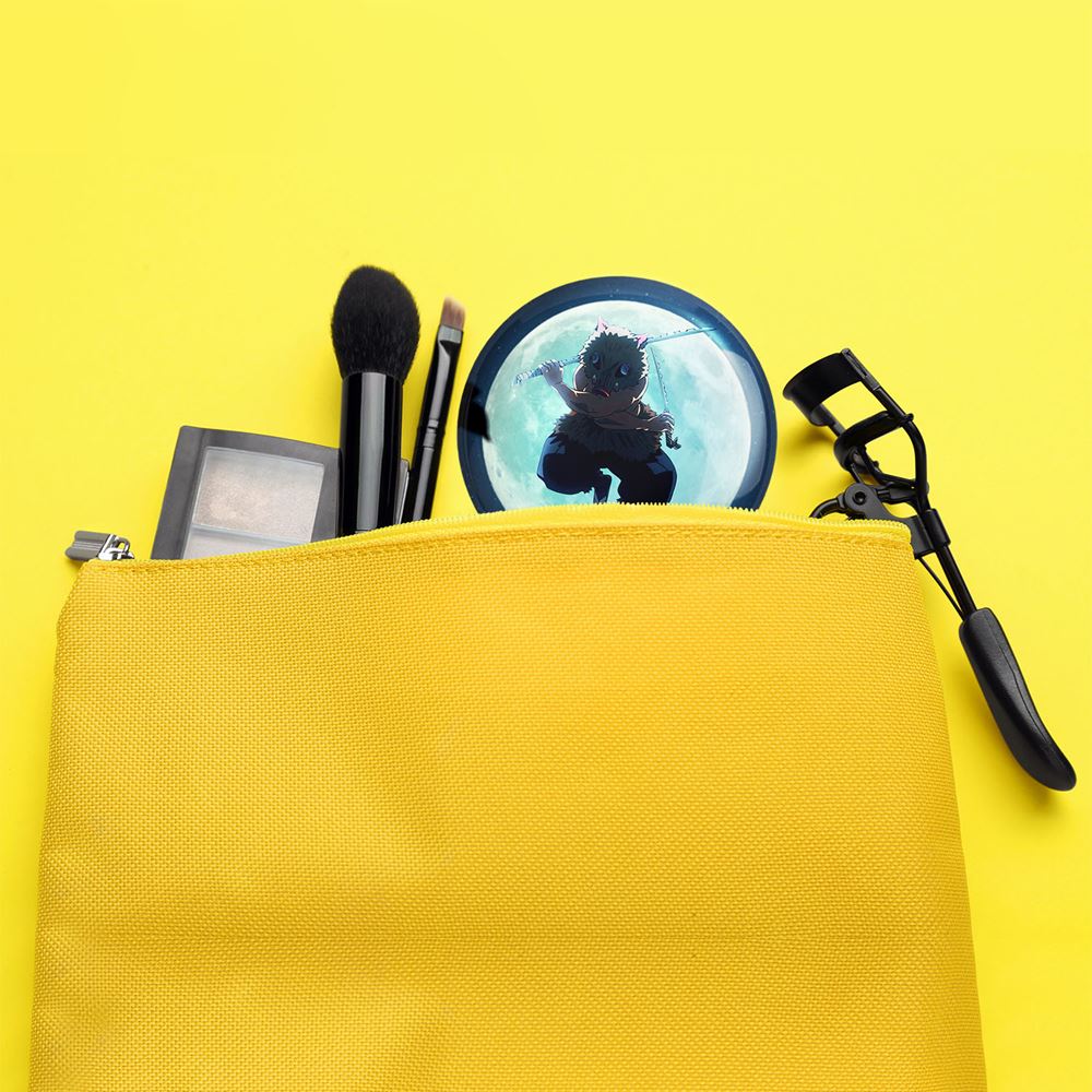 آینه های جیبی اینوسکه انیمه شیطان کش خندالو دایره ای به قطر 7.5 سانتی متر می باشد که نه خیلی بزرگ و غیر قابل استفاده در کیف آرایشی ست و نه خیلی کوچک که تصویر خاصی در آن مشاهده نشود. سایزی استاندارد و کارآمد دارد و مناسب قرار گیری در کیف لوازم آرایش و کیف های کوچک دستی نیز هست.
