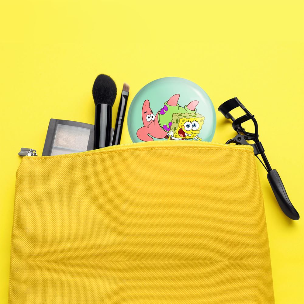 آینه های جیبی باب اسفنجی و پاتریک خندالو دایره ای به قطر 7.5 سانتی متر می باشد که نه خیلی بزرگ و غیر قابل استفاده در کیف آرایشی ست و نه خیلی کوچک که تصویر خاصی در آن مشاهده نشود. سایزی استاندارد و کارآمد دارد و مناسب قرار گیری در کیف لوازم آرایش و کیف های کوچک دستی نیز هست.