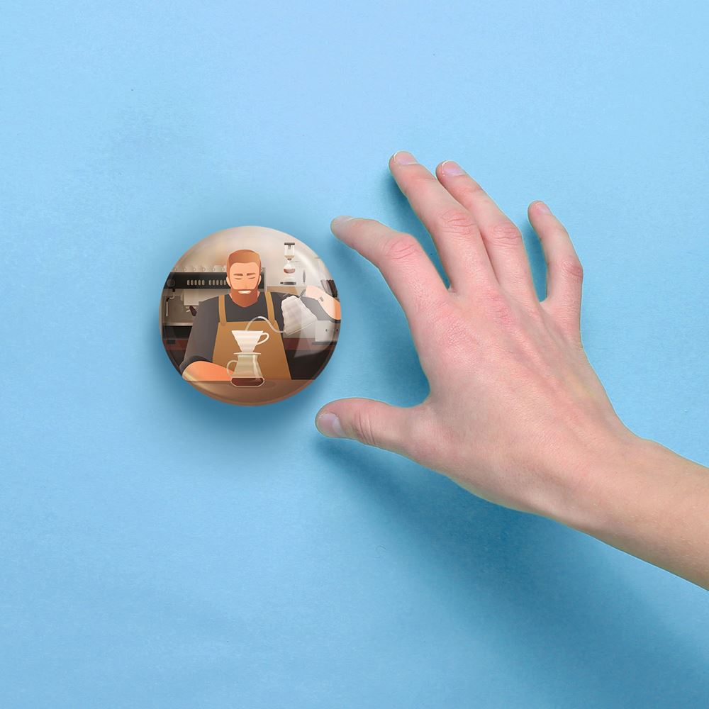 آینه های جیبی باریستا کافه چی خندالو دایره ای به قطر 7.5 سانتی متر می باشد که نه خیلی بزرگ و غیر قابل استفاده در کیف آرایشی ست و نه خیلی کوچک که تصویر خاصی در آن مشاهده نشود. سایزی استاندارد و کارآمد دارد و مناسب قرار گیری در کیف لوازم آرایش و کیف های کوچک دستی نیز هست.