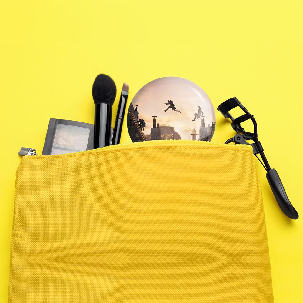 آینه های جیبی بازی اساسینز کرید Assassin’s Creed خندالو دایره ای به قطر 7.5 سانتی متر می باشد که نه خیلی بزرگ و غیر قابل استفاده در کیف آرایشی ست و نه خیلی کوچک که تصویر خاصی در آن مشاهده نشود. سایزی استاندارد و کارآمد دارد و مناسب قرار گیری در کیف لوازم آرایش و کیف های کوچک دستی نیز هست.