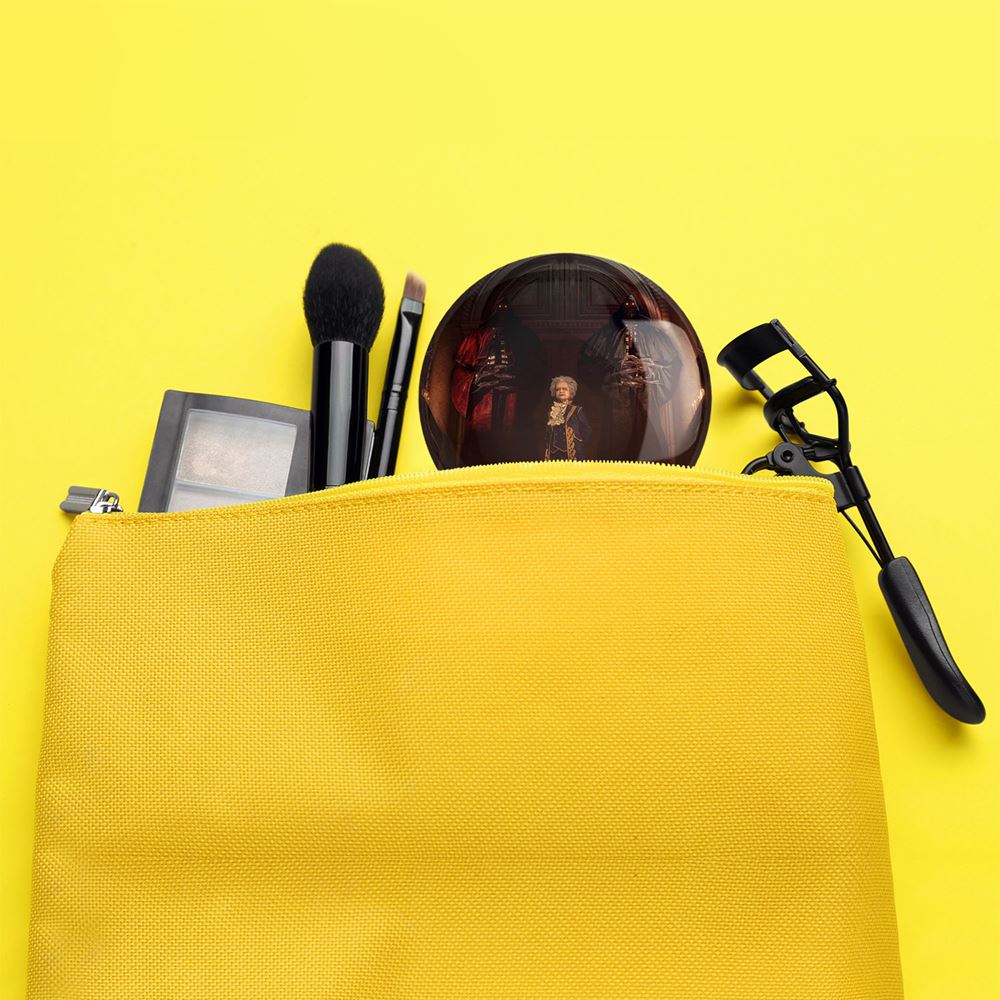 آینه های جیبی بازی رزیدنت اویل Resident Evil خندالو دایره ای به قطر 7.5 سانتی متر می باشد که نه خیلی بزرگ و غیر قابل استفاده در کیف آرایشی ست و نه خیلی کوچک که تصویر خاصی در آن مشاهده نشود. سایزی استاندارد و کارآمد دارد و مناسب قرار گیری در کیف لوازم آرایش و کیف های کوچک دستی نیز هست.