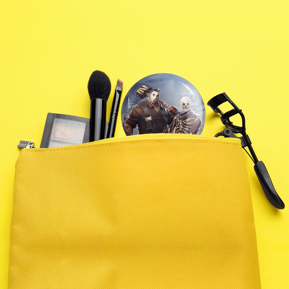 آینه های جیبی بازی فورتنایت Fortnite خندالو دایره ای به قطر 7.5 سانتی متر می باشد که نه خیلی بزرگ و غیر قابل استفاده در کیف آرایشی ست و نه خیلی کوچک که تصویر خاصی در آن مشاهده نشود. سایزی استاندارد و کارآمد دارد و مناسب قرار گیری در کیف لوازم آرایش و کیف های کوچک دستی نیز هست. بدنه ی آینه جیبی بازی فورتنایت Fortnite در قسمتی که آینه را در بر گرفته فلزی بوده و ظاهر براق و بسیار زیبایی دارد. چاپ طرح در پشت آینه بوسیله چاپگرهای دیجیتال شش رنگ با شفافیت و کیفیتی مثال زدنی انجام گرفته و با روکش لمینت حرارتی پوشیده شده که در مقابل آسیب و خط و خش مقاوم بوده و کیفیت بالایی دارد. آینه های جیبی بازی فورتنایت Fortnite خندالو با تنوع طرحی بسیار بالا، سلیقه هر نوع مخاطبی را تامین میکند.