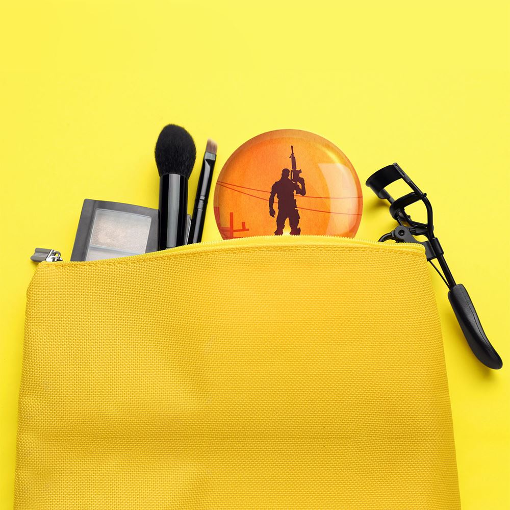 آینه های جیبی بازی فورتنایت Fortnite خندالو دایره ای به قطر 7.5 سانتی متر می باشد که نه خیلی بزرگ و غیر قابل استفاده در کیف آرایشی ست و نه خیلی کوچک که تصویر خاصی در آن مشاهده نشود. سایزی استاندارد و کارآمد دارد و مناسب قرار گیری در کیف لوازم آرایش و کیف های کوچک دستی نیز هست.