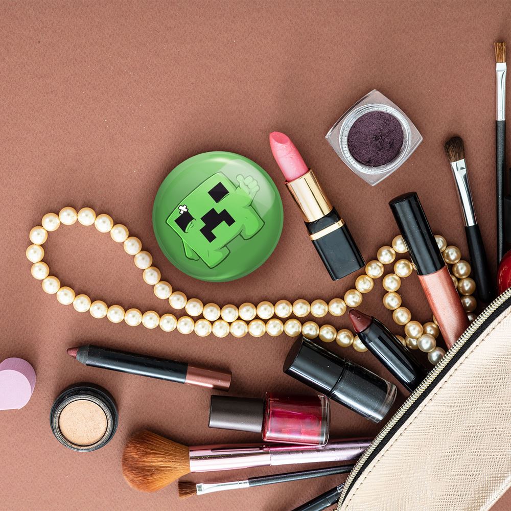 آینه های جیبی بازی ماینکرافت Minecraft خندالو دایره ای به قطر 7.5 سانتی متر می باشد که نه خیلی بزرگ و غیر قابل استفاده در کیف آرایشی ست و نه خیلی کوچک که تصویر خاصی در آن مشاهده نشود. سایزی استاندارد و کارآمد دارد و مناسب قرار گیری در کیف لوازم آرایش و کیف های کوچک دستی نیز هست.