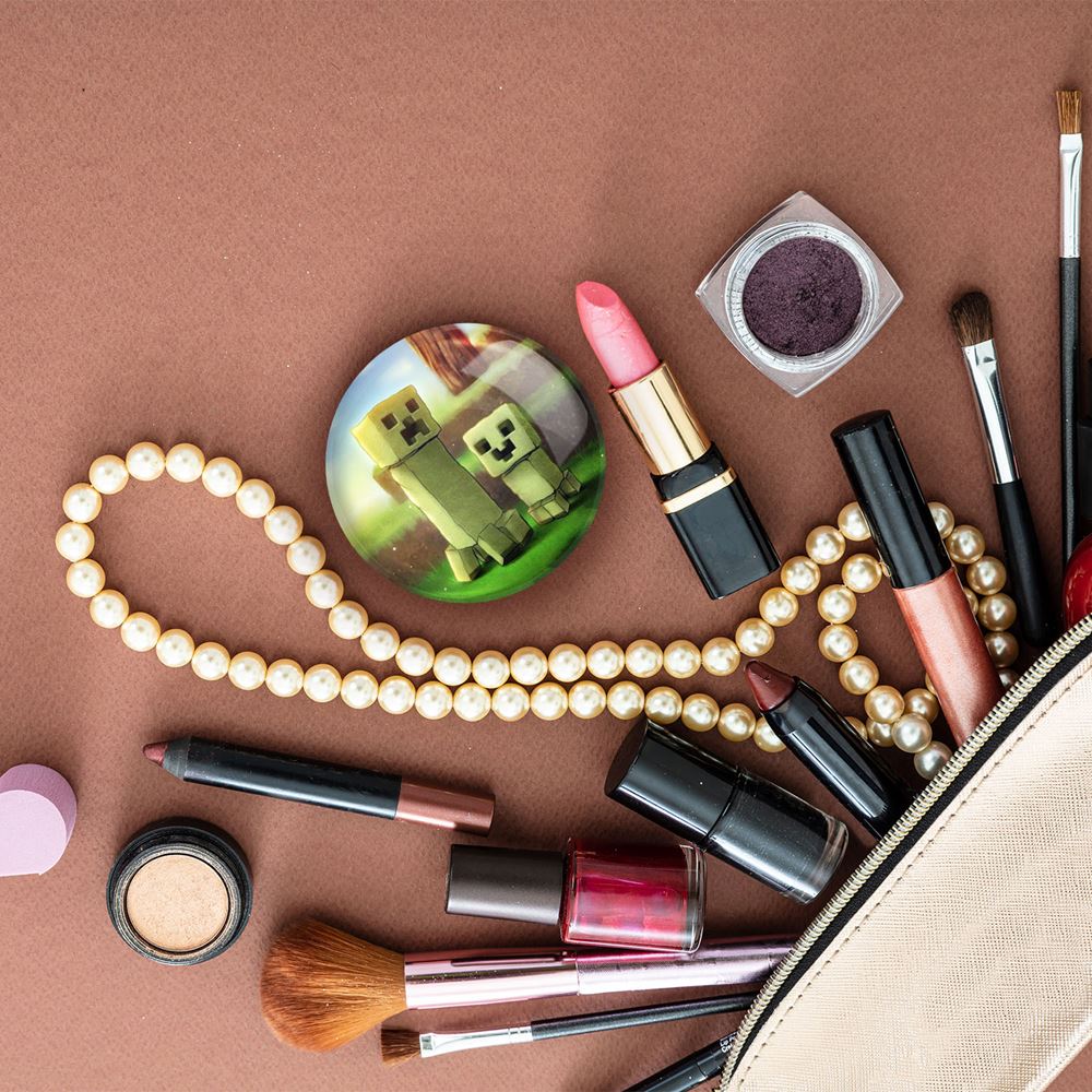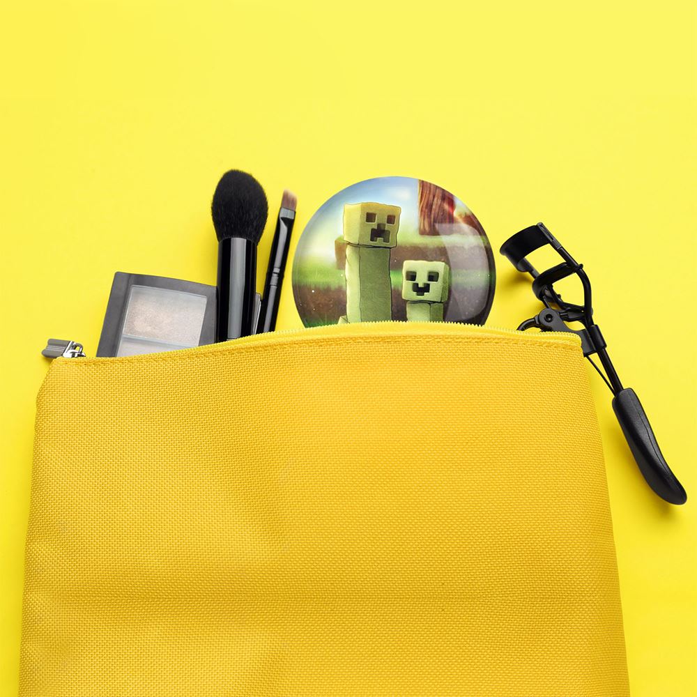 آینه های جیبی بازی ماینکرافت Minecraft خندالو دایره ای به قطر 7.5 سانتی متر می باشد که نه خیلی بزرگ و غیر قابل استفاده در کیف آرایشی ست و نه خیلی کوچک که تصویر خاصی در آن مشاهده نشود. سایزی استاندارد و کارآمد دارد و مناسب قرار گیری در کیف لوازم آرایش و کیف های کوچک دستی نیز هست.