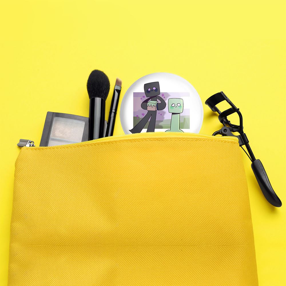 آینه های جیبی بازی ماینکرافت Minecraft خندالو دایره ای به قطر 7.5 سانتی متر می باشد که نه خیلی بزرگ و غیر قابل استفاده در کیف آرایشی ست و نه خیلی کوچک که تصویر خاصی در آن مشاهده نشود. سایزی استاندارد و کارآمد دارد و مناسب قرار گیری در کیف لوازم آرایش و کیف های کوچک دستی نیز هست.
