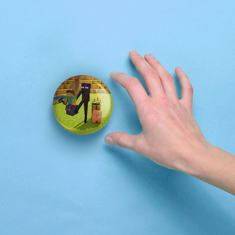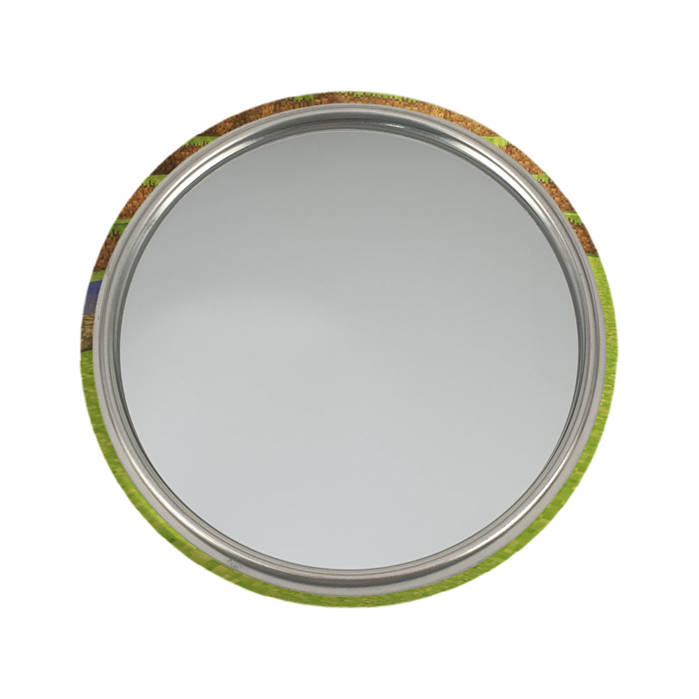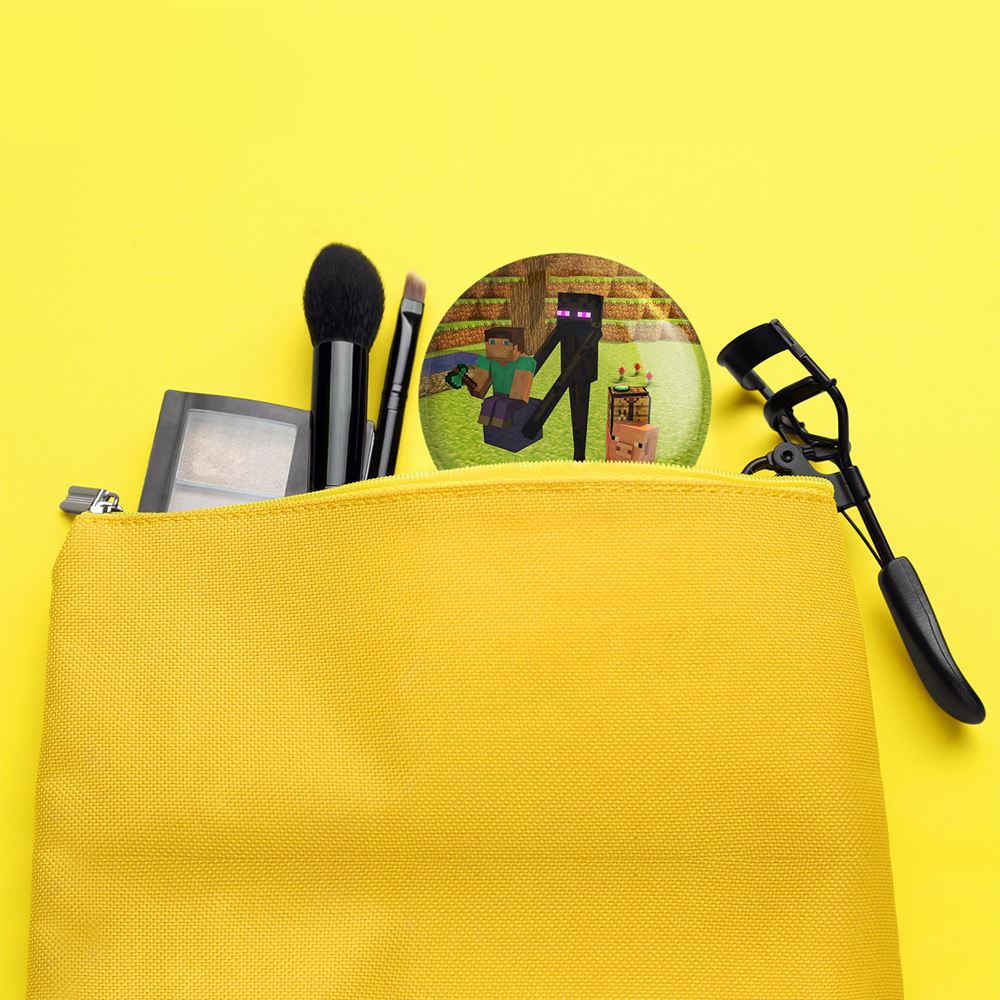 آینه های جیبی بازی ماینکرافت Minecraft خندالو دایره ای به قطر 7.5 سانتی متر می باشد که نه خیلی بزرگ و غیر قابل استفاده در کیف آرایشی ست و نه خیلی کوچک که تصویر خاصی در آن مشاهده نشود. سایزی استاندارد و کارآمد دارد و مناسب قرار گیری در کیف لوازم آرایش و کیف های کوچک دستی نیز هست.