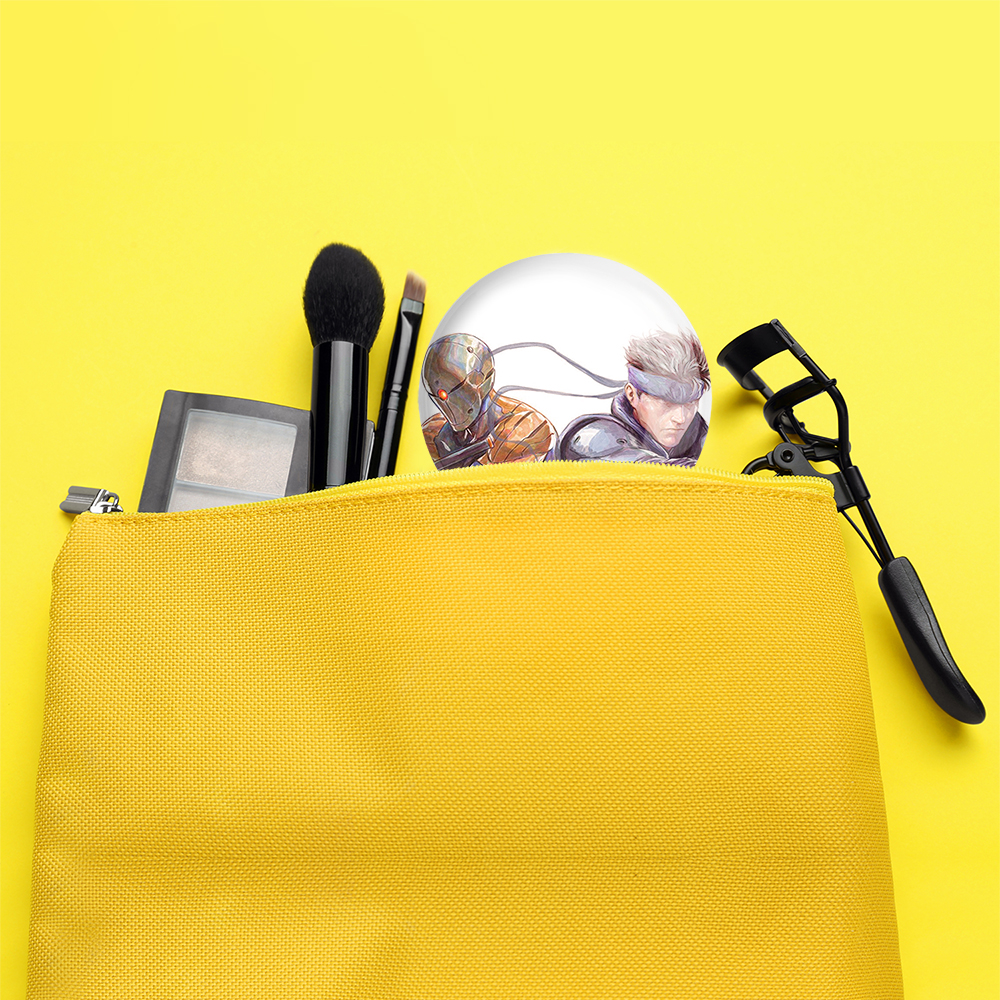 آینه های جیبی بازی متال گیر (Metal Gear) خندالو دایره ای به قطر 7.5 سانتی متر می باشد که نه خیلی بزرگ و غیر قابل استفاده در کیف آرایشی ست و نه خیلی کوچک که تصویر خاصی در آن مشاهده نشود. سایزی استاندارد و کارآمد دارد و مناسب قرار گیری در کیف لوازم آرایش و کیف های کوچک دستی نیز هست.
