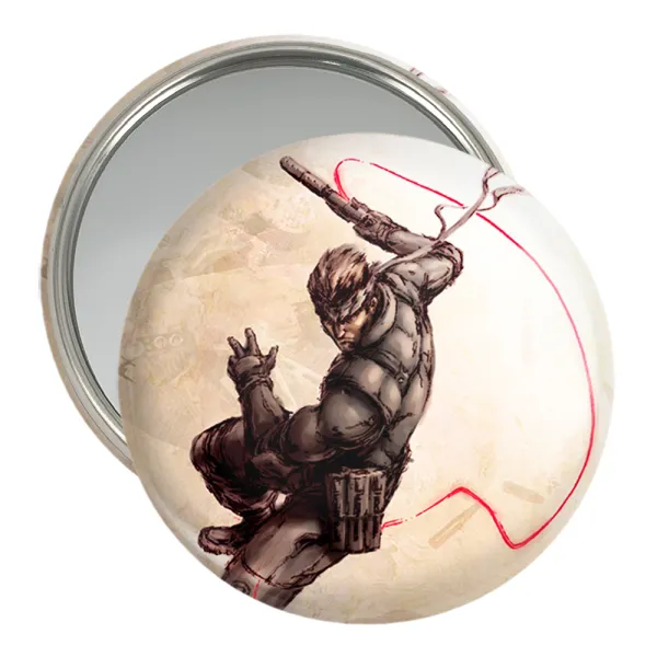آینه های جیبی بازی متال گیر (Metal Gear) خندالو دایره ای به قطر 7.5 سانتی متر می باشد که نه خیلی بزرگ و غیر قابل استفاده در کیف آرایشی ست و نه خیلی کوچک که تصویر خاصی در آن مشاهده نشود. سایزی استاندارد و کارآمد دارد و مناسب قرار گیری در کیف لوازم آرایش و کیف های کوچک دستی نیز هست.