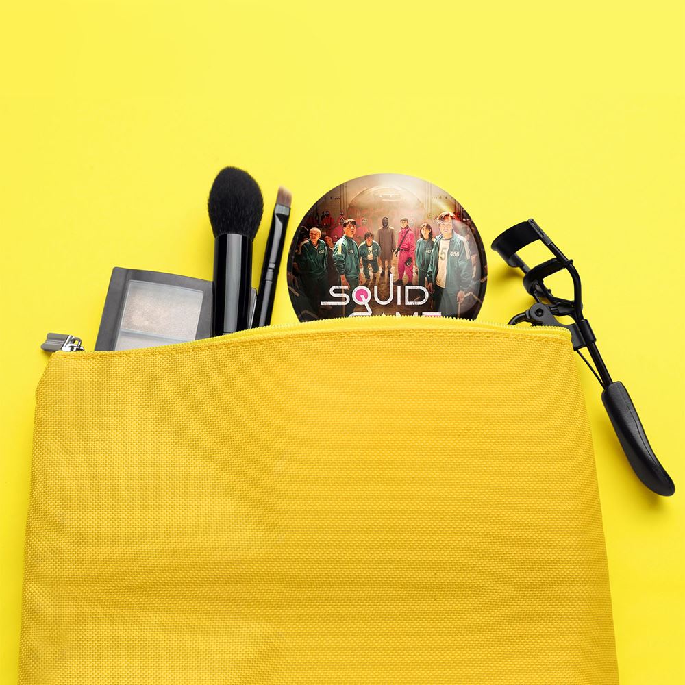 آینه های جیبی بازی مرکب Squid Game خندالو دایره ای به قطر 7.5 سانتی متر می باشد که نه خیلی بزرگ و غیر قابل استفاده در کیف آرایشی ست و نه خیلی کوچک که تصویر خاصی در آن مشاهده نشود. سایزی استاندارد و کارآمد دارد و مناسب قرار گیری در کیف لوازم آرایش و کیف های کوچک دستی نیز هست.