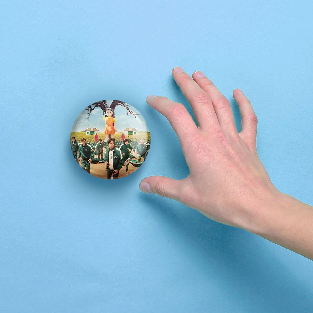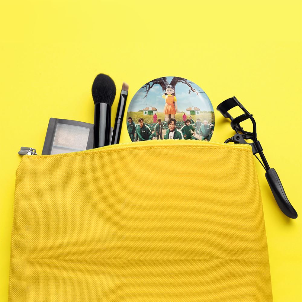 آینه های جیبی بازی مرکب Squid Game خندالو دایره ای به قطر 7.5 سانتی متر می باشد که نه خیلی بزرگ و غیر قابل استفاده در کیف آرایشی ست و نه خیلی کوچک که تصویر خاصی در آن مشاهده نشود. سایزی استاندارد و کارآمد دارد و مناسب قرار گیری در کیف لوازم آرایش و کیف های کوچک دستی نیز هست.