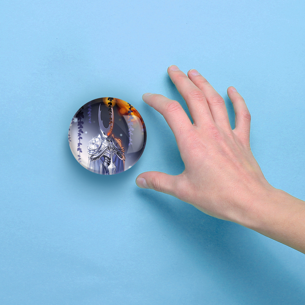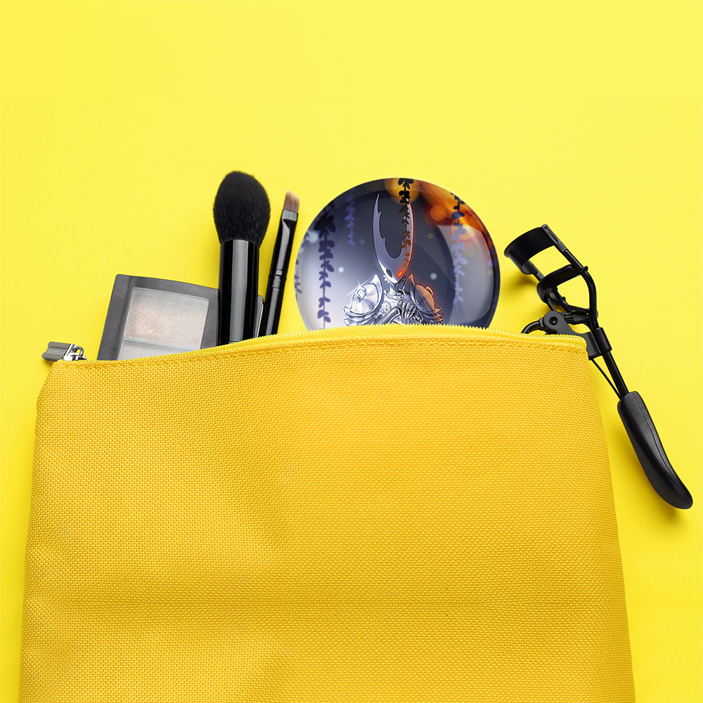 آینه های جیبی بازی هالو نایت (Hollow Knight) خندالو دایره ای به قطر 7.5 سانتی متر می باشد که نه خیلی بزرگ و غیر قابل استفاده در کیف آرایشی ست و نه خیلی کوچک که تصویر خاصی در آن مشاهده نشود. سایزی استاندارد و کارآمد دارد و مناسب قرار گیری در کیف لوازم آرایش و کیف های کوچک دستی نیز هست.