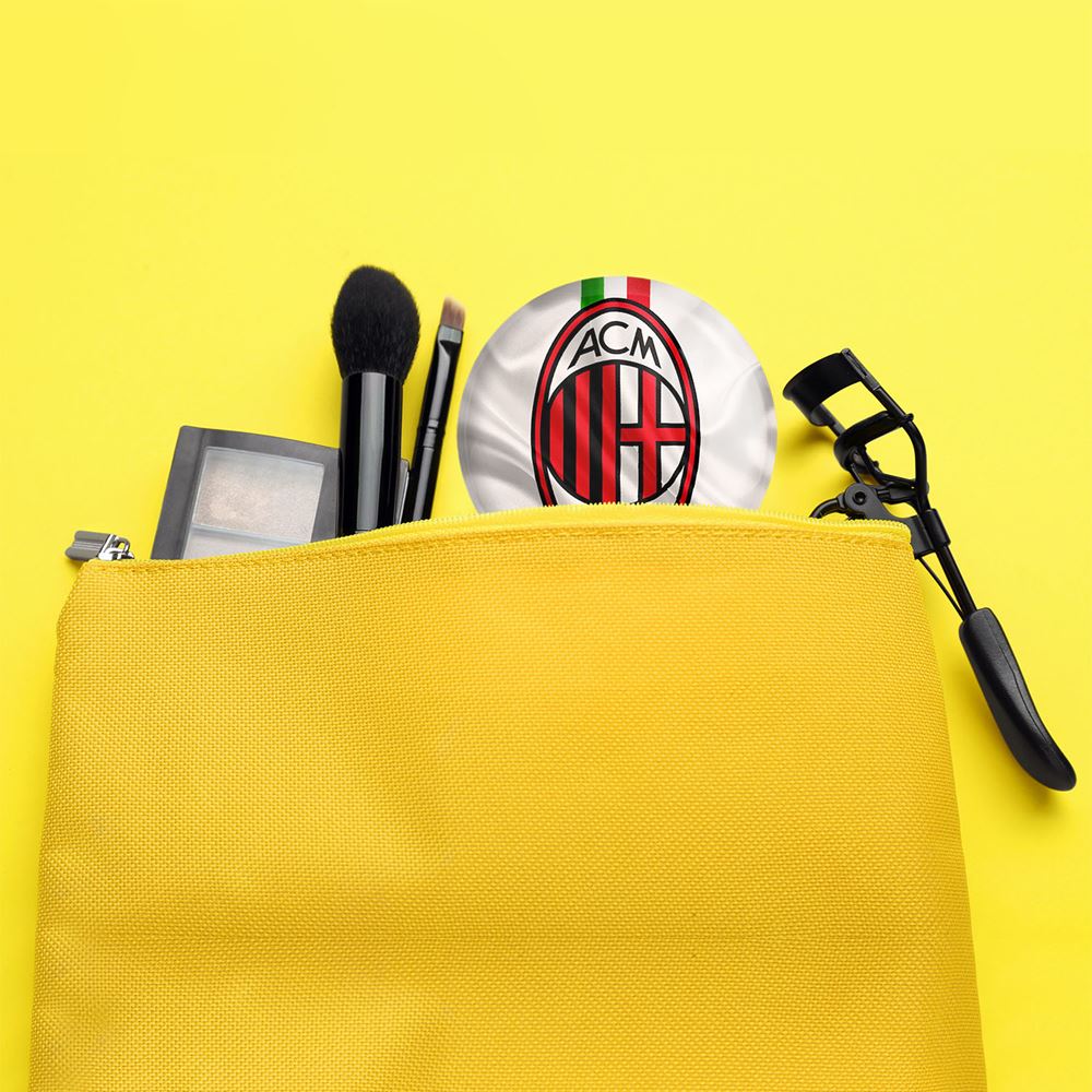آینه های جیبی باشگاه آث میلان خندالو دایره ای به قطر 7.5 سانتی متر می باشد که نه خیلی بزرگ و غیر قابل استفاده در کیف آرایشی ست و نه خیلی کوچک که تصویر خاصی در آن مشاهده نشود. سایزی استاندارد و کارآمد دارد و مناسب قرار گیری در کیف لوازم آرایش و کیف های کوچک دستی نیز هست.