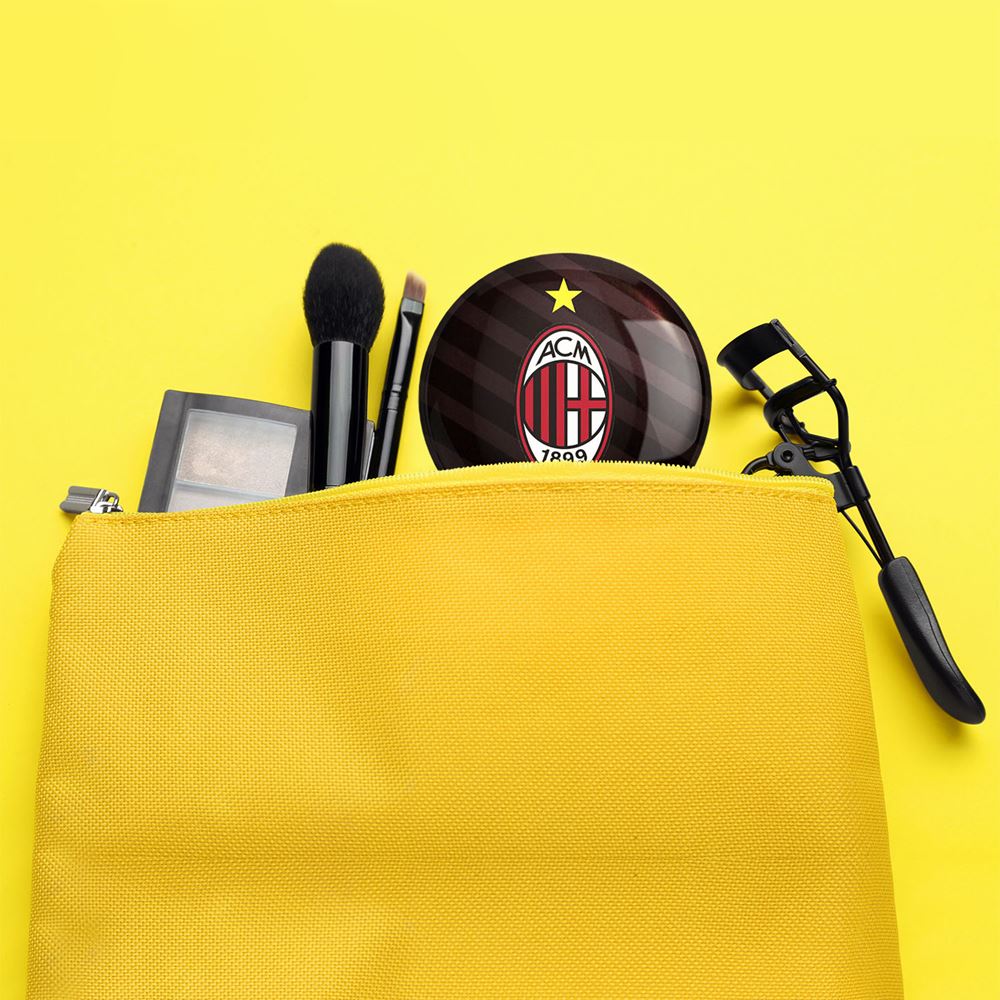 آینه های جیبی باشگاه آث میلان خندالو دایره ای به قطر 7.5 سانتی متر می باشد که نه خیلی بزرگ و غیر قابل استفاده در کیف آرایشی ست و نه خیلی کوچک که تصویر خاصی در آن مشاهده نشود. سایزی استاندارد و کارآمد دارد و مناسب قرار گیری در کیف لوازم آرایش و کیف های کوچک دستی نیز هست.