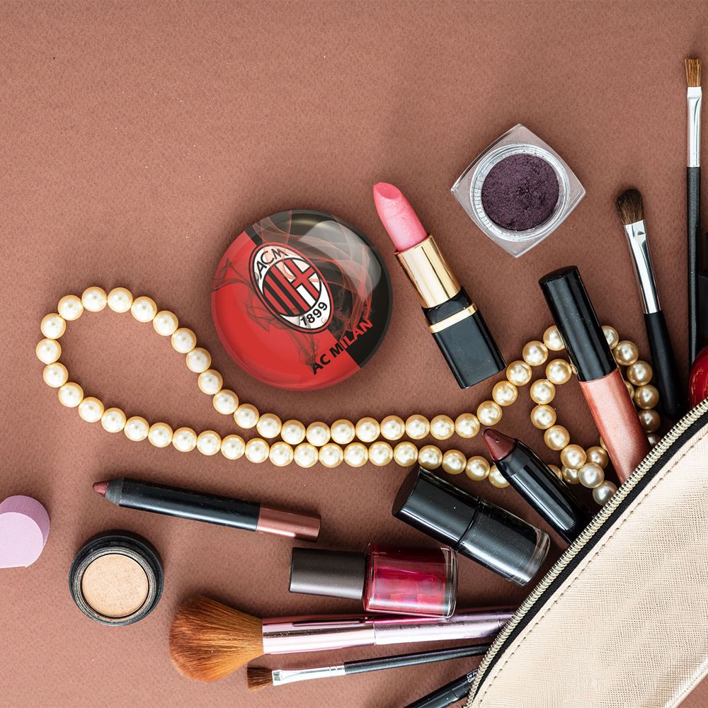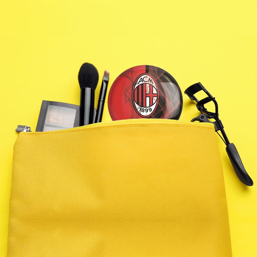 آینه های جیبی باشگاه آث میلان خندالو دایره ای به قطر 7.5 سانتی متر می باشد که نه خیلی بزرگ و غیر قابل استفاده در کیف آرایشی ست و نه خیلی کوچک که تصویر خاصی در آن مشاهده نشود. سایزی استاندارد و کارآمد دارد و مناسب قرار گیری در کیف لوازم آرایش و کیف های کوچک دستی نیز هست.