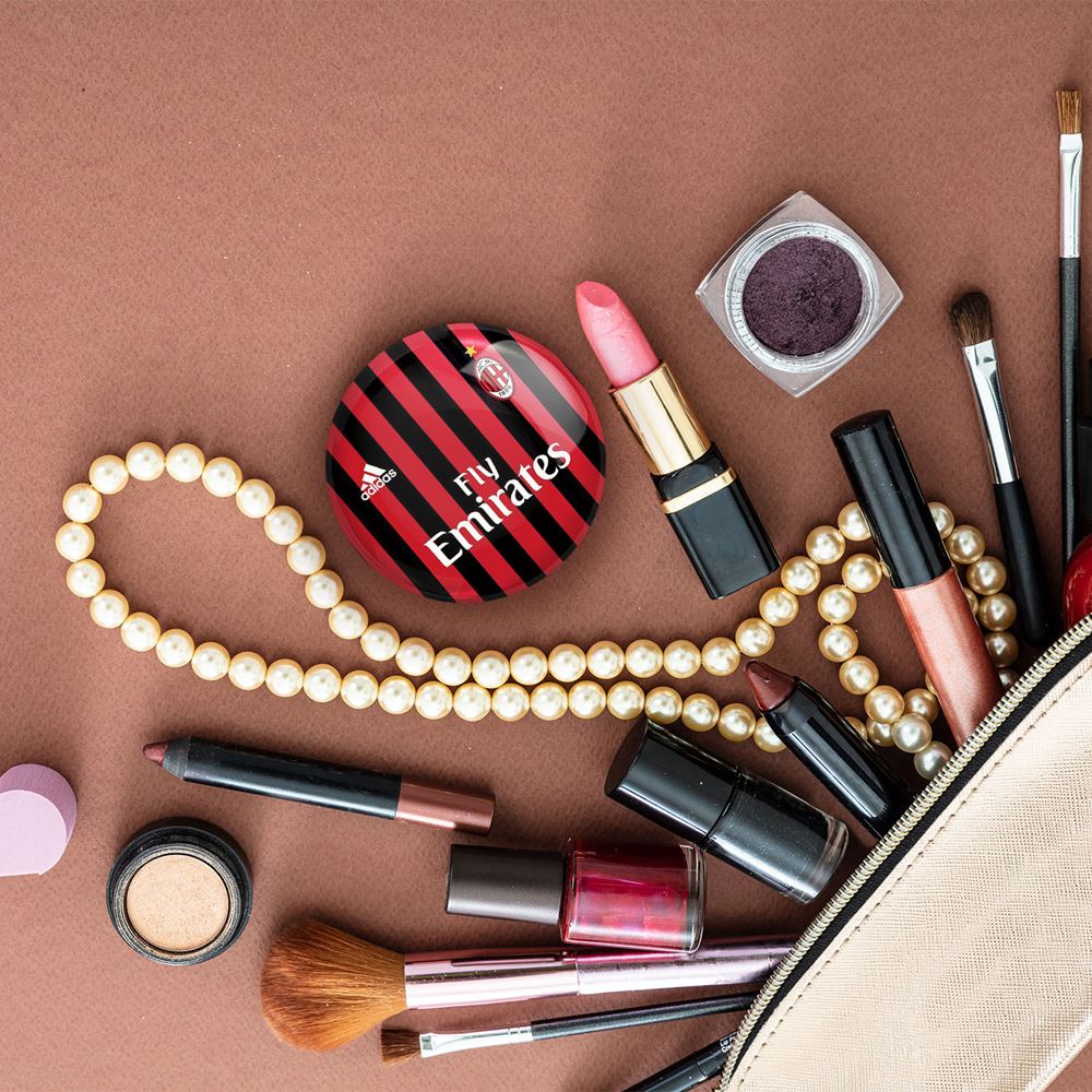 آینه های جیبی باشگاه آ اس رم A.S.Roma خندالو دایره ای به قطر 7.5 سانتی متر می باشد که نه خیلی بزرگ و غیر قابل استفاده در کیف آرایشی ست و نه خیلی کوچک که تصویر خاصی در آن مشاهده نشود. سایزی استاندارد و کارآمد دارد و مناسب قرار گیری در کیف لوازم آرایش و کیف های کوچک دستی نیز هست.