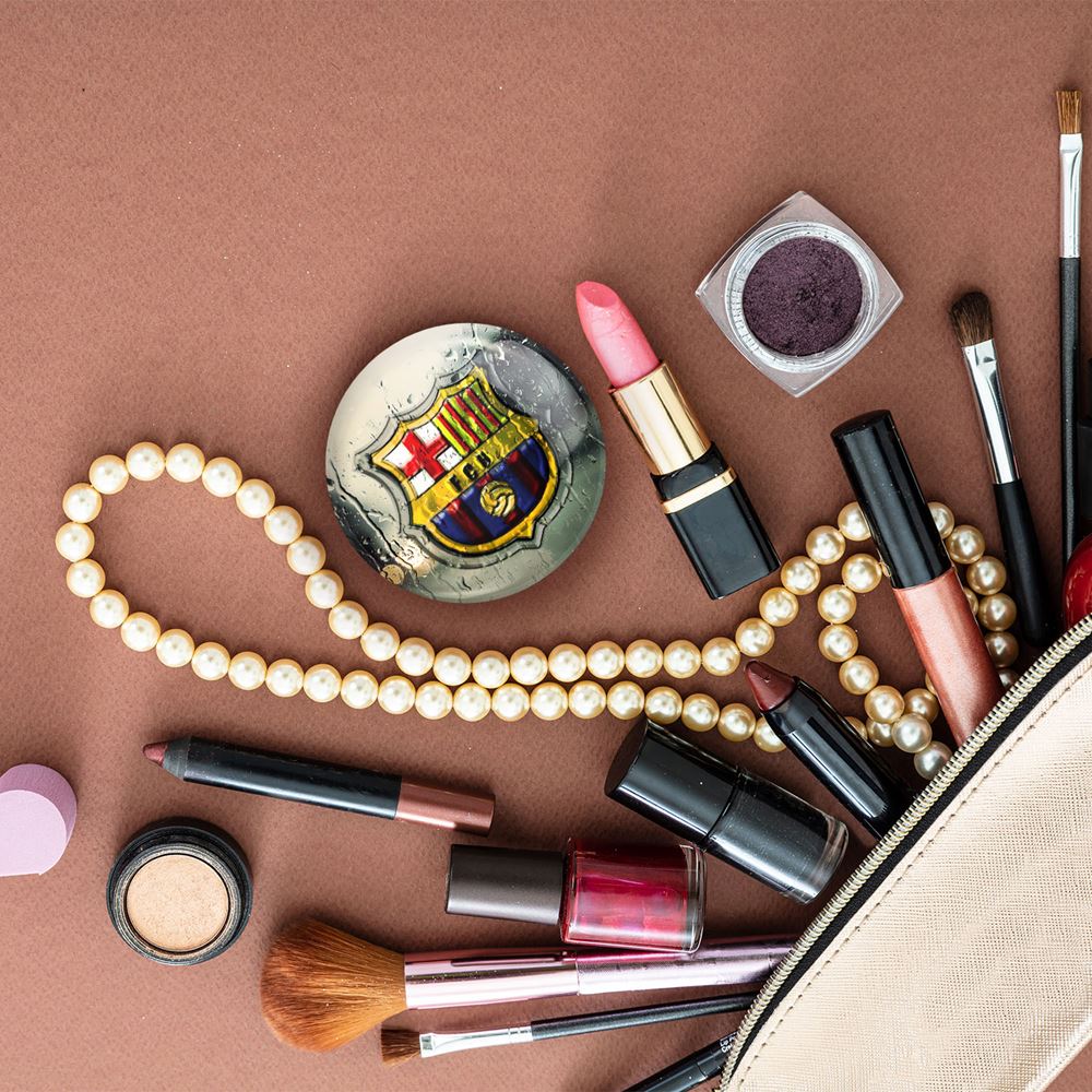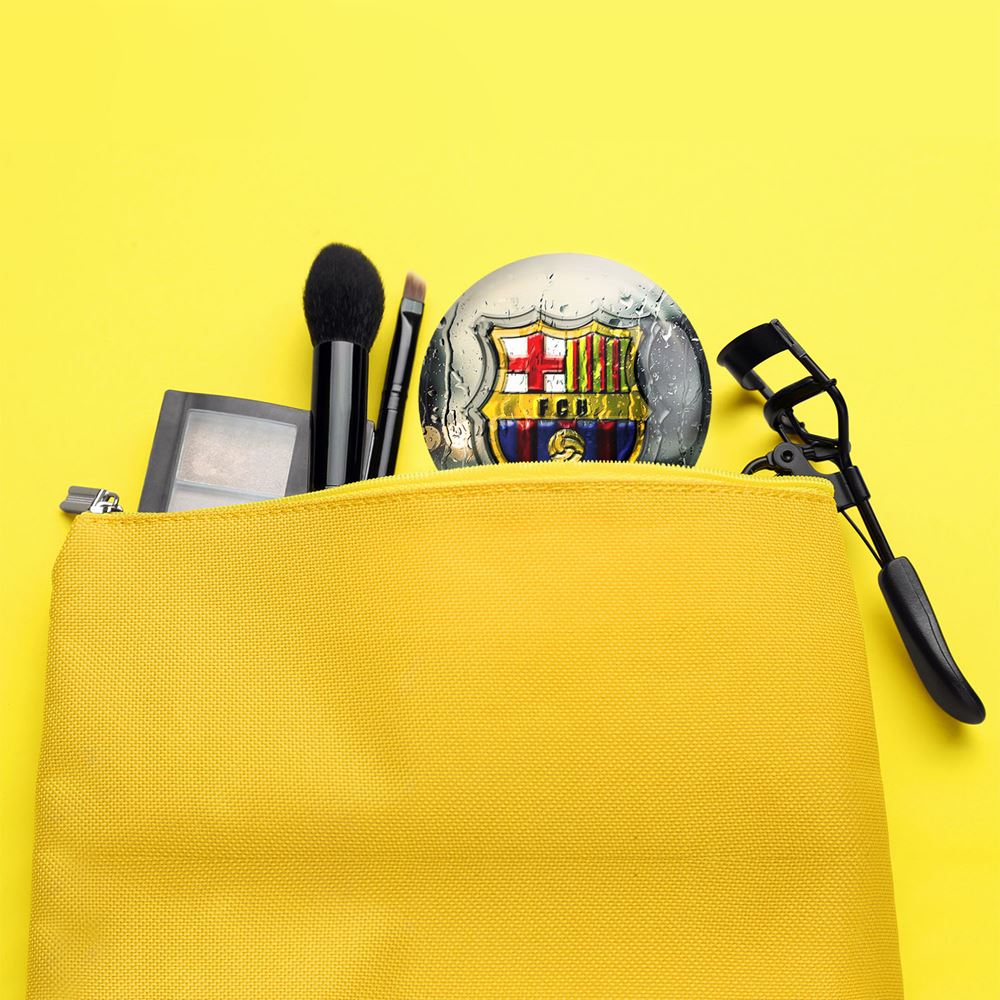 آینه های جیبی باشگاه بارسلونا خندالو دایره ای به قطر 7.5 سانتی متر می باشد که نه خیلی بزرگ و غیر قابل استفاده در کیف آرایشی ست و نه خیلی کوچک که تصویر خاصی در آن مشاهده نشود. سایزی استاندارد و کارآمد دارد و مناسب قرار گیری در کیف لوازم آرایش و کیف های کوچک دستی نیز هست.