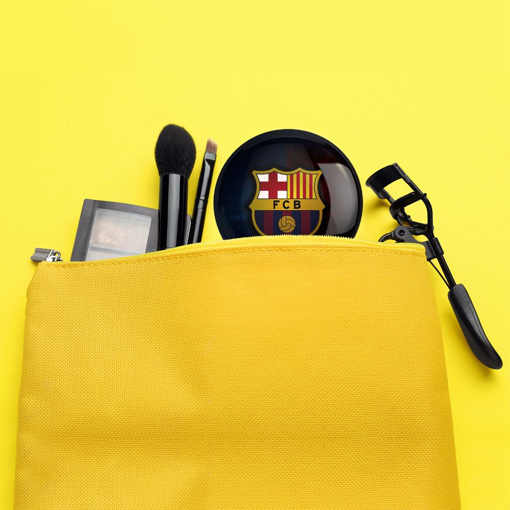 آینه های جیبی باشگاه بارسلونا خندالو دایره ای به قطر 7.5 سانتی متر می باشد که نه خیلی بزرگ و غیر قابل استفاده در کیف آرایشی ست و نه خیلی کوچک که تصویر خاصی در آن مشاهده نشود. سایزی استاندارد و کارآمد دارد و مناسب قرار گیری در کیف لوازم آرایش و کیف های کوچک دستی نیز هست.