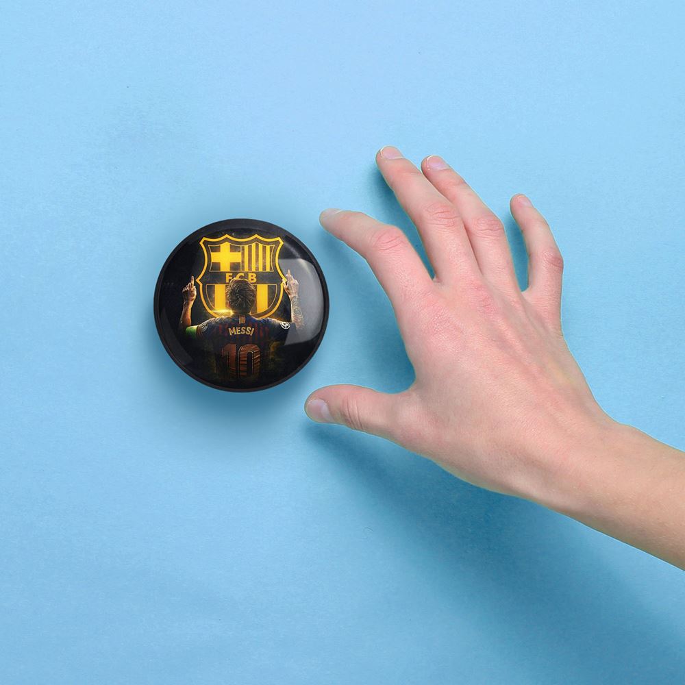 آینه های جیبی باشگاه بارسلونا FC Barcelona خندالو دایره ای به قطر 7.5 سانتی متر می باشد که نه خیلی بزرگ و غیر قابل استفاده در کیف آرایشی ست و نه خیلی کوچک که تصویر خاصی در آن مشاهده نشود. سایزی استاندارد و کارآمد دارد و مناسب قرار گیری در کیف لوازم آرایش و کیف های کوچک دستی نیز هست.