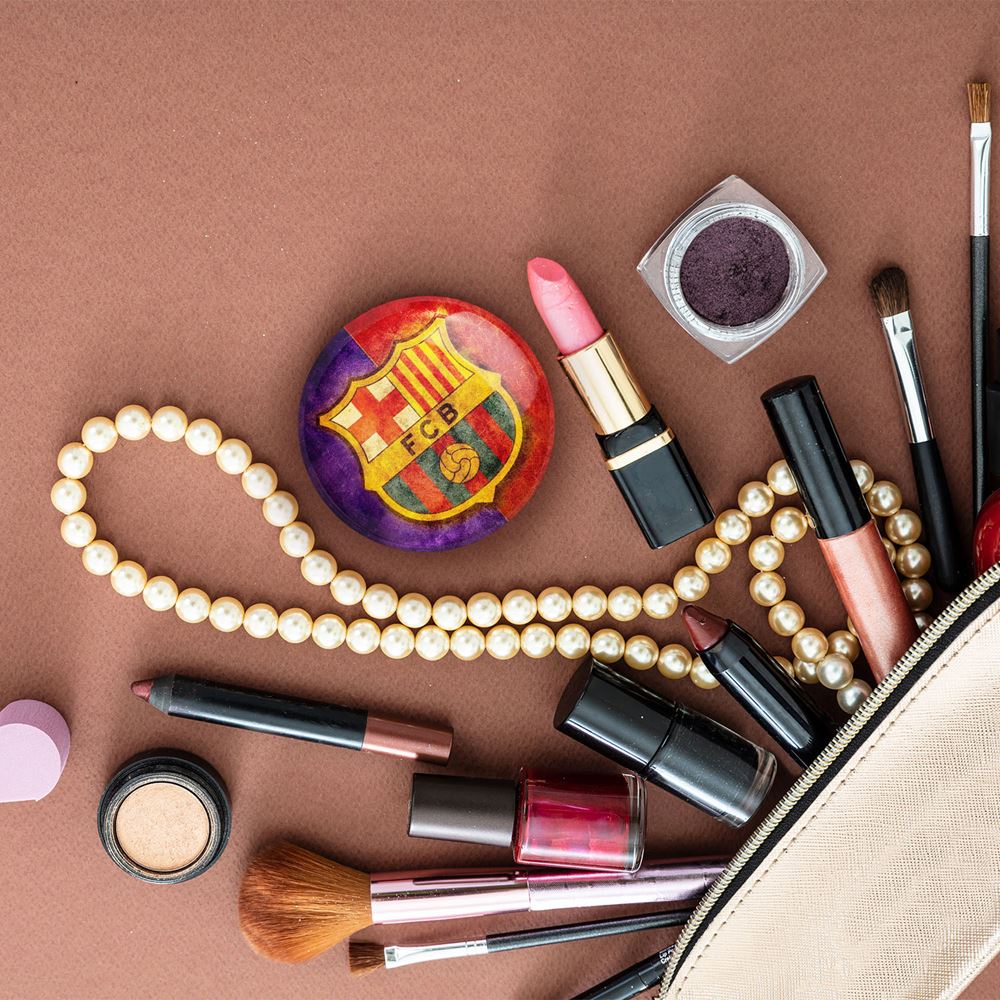 آینه های جیبی باشگاه بارسلونا FC Barcelona خندالو دایره ای به قطر 7.5 سانتی متر می باشد که نه خیلی بزرگ و غیر قابل استفاده در کیف آرایشی ست و نه خیلی کوچک که تصویر خاصی در آن مشاهده نشود. سایزی استاندارد و کارآمد دارد و مناسب قرار گیری در کیف لوازم آرایش و کیف های کوچک دستی نیز هست.