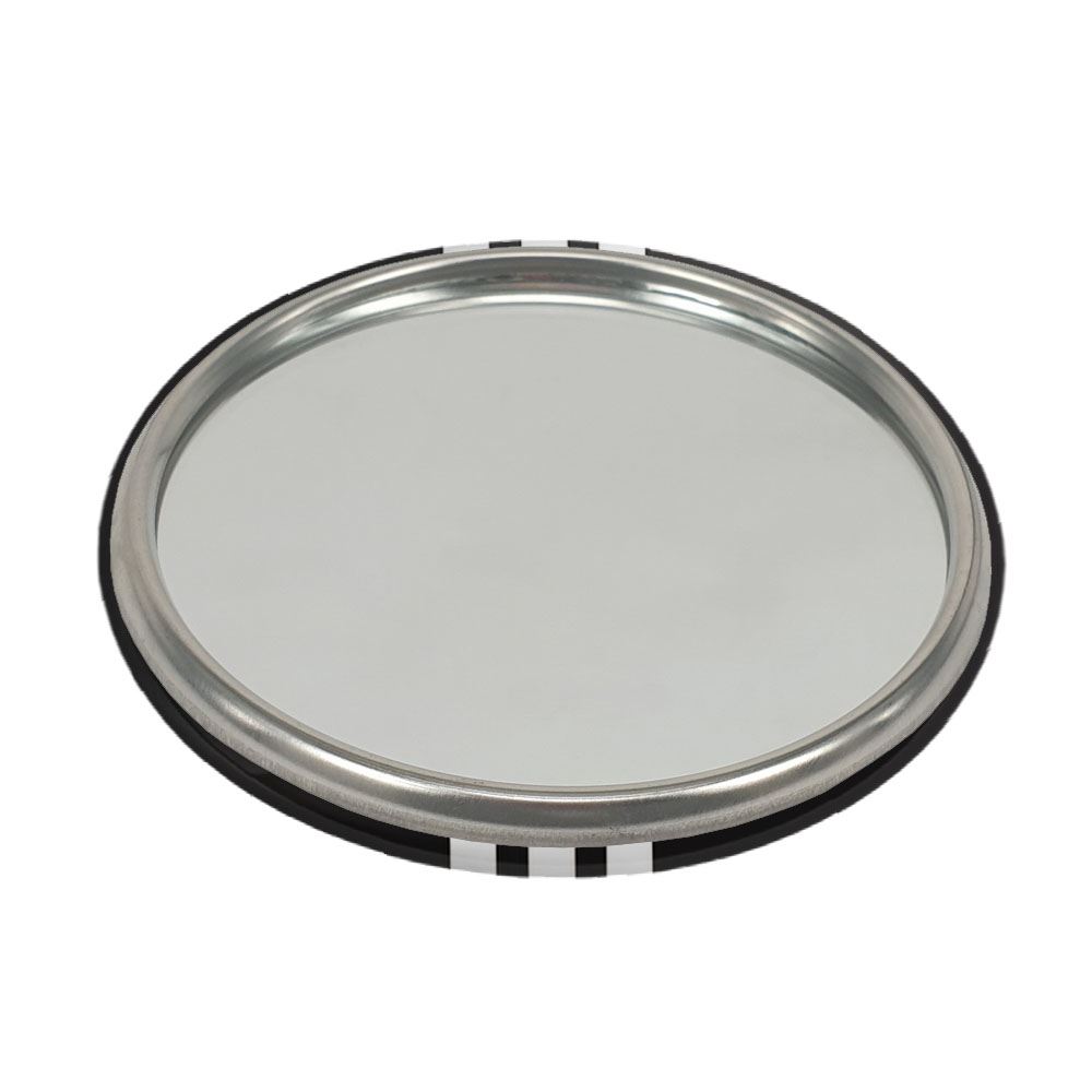 آینه های جیبی باشگاه رئال مادرید خندالو دایره ای به قطر 7.5 سانتی متر می باشد که نه خیلی بزرگ و غیر قابل استفاده در کیف آرایشی ست و نه خیلی کوچک که تصویر خاصی در آن مشاهده نشود. سایزی استاندارد و کارآمد دارد و مناسب قرار گیری در کیف لوازم آرایش و کیف های کوچک دستی نیز هست.