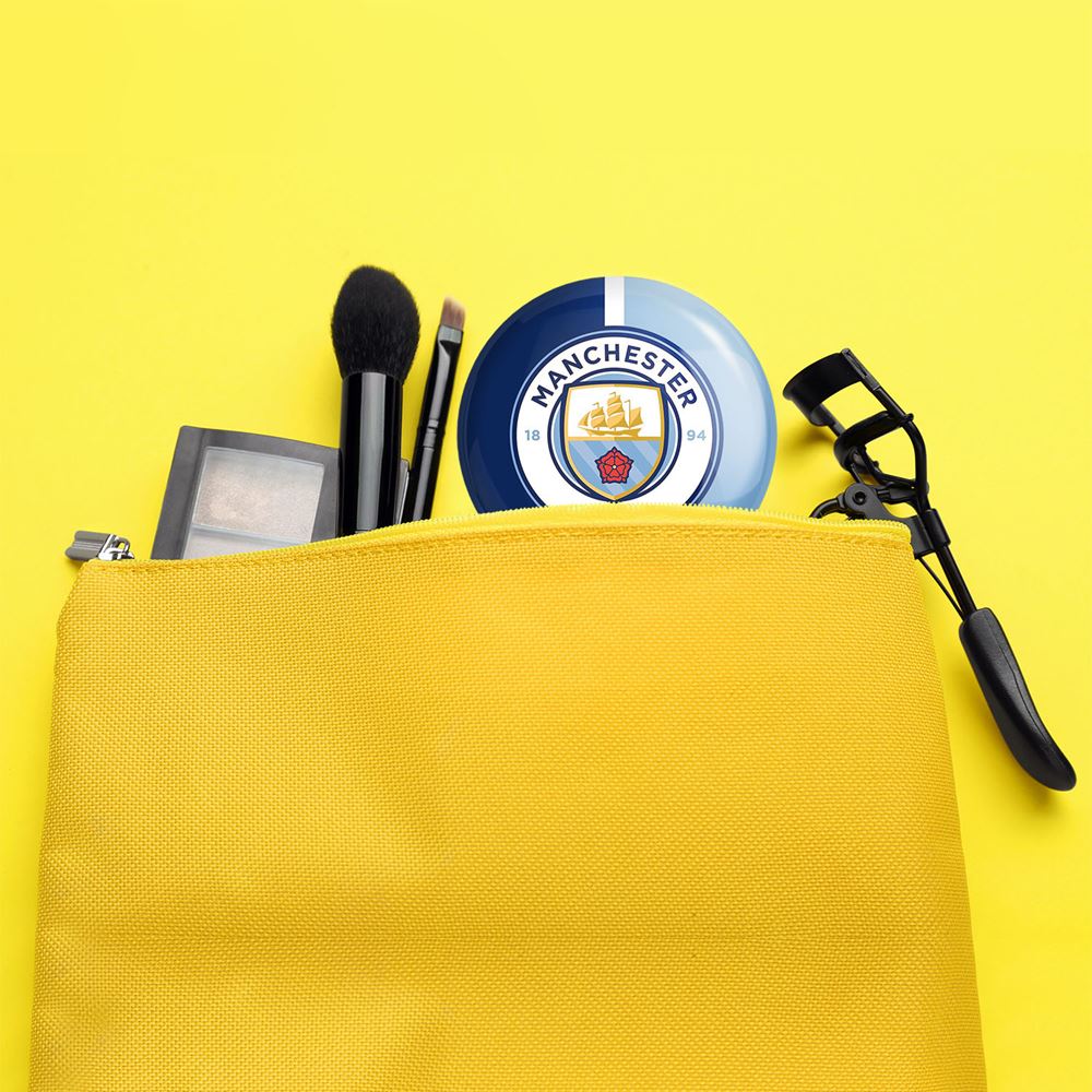 آینه های جیبی باشگاه منچستر سیتی خندالو دایره ای به قطر 7.5 سانتی متر می باشد که نه خیلی بزرگ و غیر قابل استفاده در کیف آرایشی ست و نه خیلی کوچک که تصویر خاصی در آن مشاهده نشود. سایزی استاندارد و کارآمد دارد و مناسب قرار گیری در کیف لوازم آرایش و کیف های کوچک دستی نیز هست.