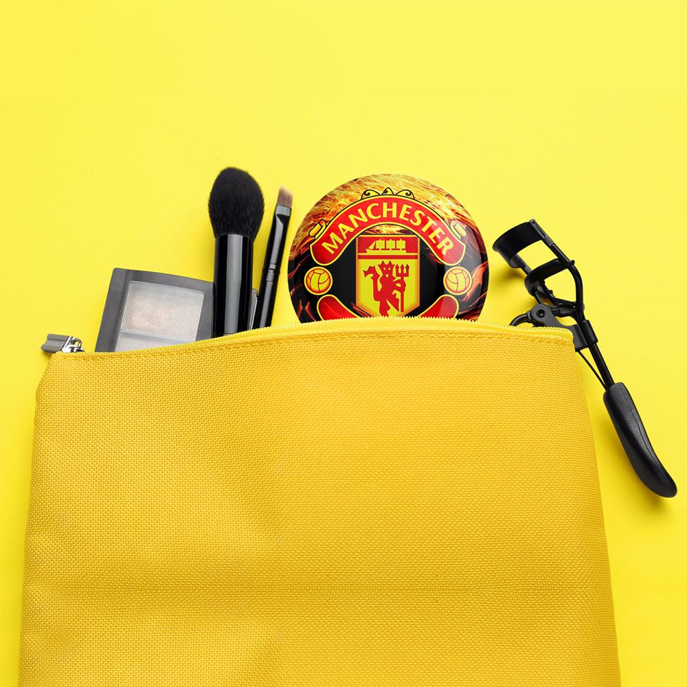 آینه های جیبی باشگاه منچستر یونایتد خندالو دایره ای به قطر 7.5 سانتی متر می باشد که نه خیلی بزرگ و غیر قابل استفاده در کیف آرایشی ست و نه خیلی کوچک که تصویر خاصی در آن مشاهده نشود. سایزی استاندارد و کارآمد دارد و مناسب قرار گیری در کیف لوازم آرایش و کیف های کوچک دستی نیز هست.