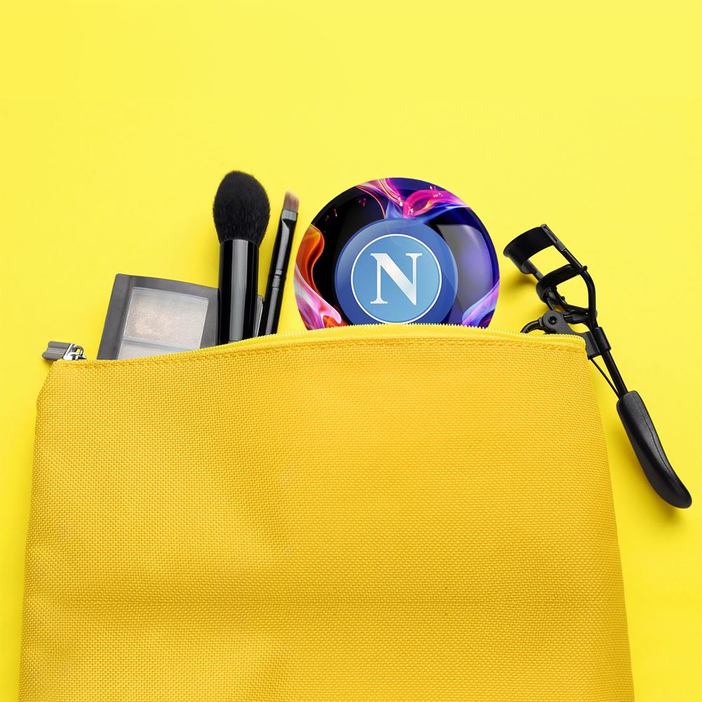 آینه های جیبی باشگاه ناپولی خندالو دایره ای به قطر 7.5 سانتی متر می باشد که نه خیلی بزرگ و غیر قابل استفاده در کیف آرایشی ست و نه خیلی کوچک که تصویر خاصی در آن مشاهده نشود. سایزی استاندارد و کارآمد دارد و مناسب قرار گیری در کیف لوازم آرایش و کیف های کوچک دستی نیز هست.
