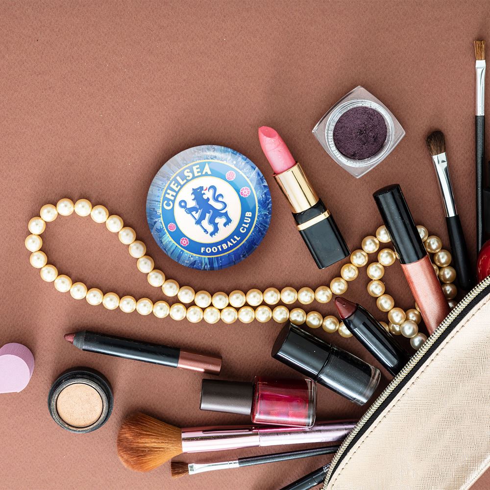 آینه های جیبی باشگاه چلسی خندالو دایره ای به قطر 7.5 سانتی متر می باشد که نه خیلی بزرگ و غیر قابل استفاده در کیف آرایشی ست و نه خیلی کوچک که تصویر خاصی در آن مشاهده نشود. سایزی استاندارد و کارآمد دارد و مناسب قرار گیری در کیف لوازم آرایش و کیف های کوچک دستی نیز هست.