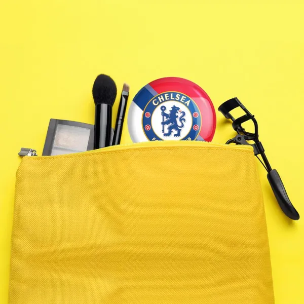 آینه های جیبی باشگاه چلسی خندالو دایره ای به قطر 7.5 سانتی متر می باشد که نه خیلی بزرگ و غیر قابل استفاده در کیف آرایشی ست و نه خیلی کوچک که تصویر خاصی در آن مشاهده نشود. سایزی استاندارد و کارآمد دارد و مناسب قرار گیری در کیف لوازم آرایش و کیف های کوچک دستی نیز هست.