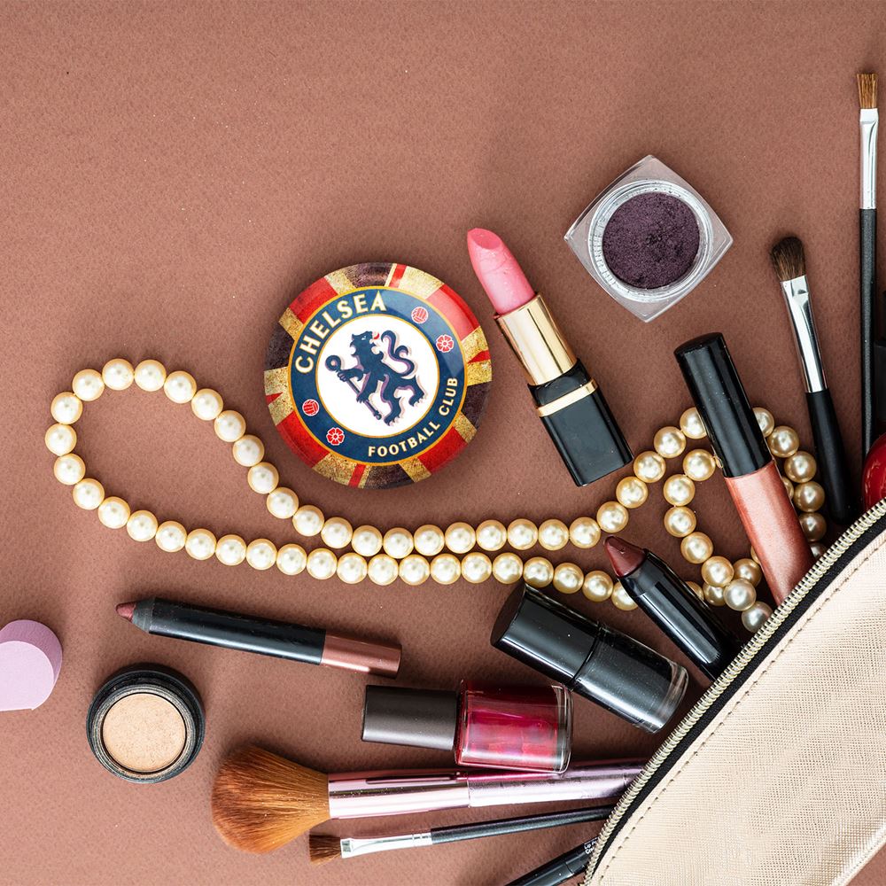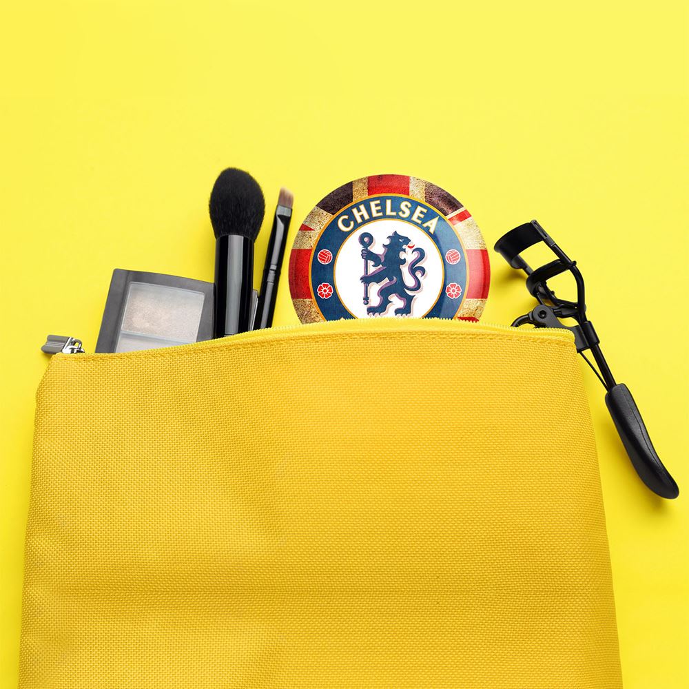 آینه های جیبی باشگاه چلسی خندالو دایره ای به قطر 7.5 سانتی متر می باشد که نه خیلی بزرگ و غیر قابل استفاده در کیف آرایشی ست و نه خیلی کوچک که تصویر خاصی در آن مشاهده نشود. سایزی استاندارد و کارآمد دارد و مناسب قرار گیری در کیف لوازم آرایش و کیف های کوچک دستی نیز هست. بدنه ی آینه جیبی باشگاه چلسی در قسمتی که آینه را در بر گرفته فلزی بوده و ظاهر براق و بسیار زیبایی دارد. چاپ طرح در پشت آینه بوسیله چاپگرهای دیجیتال شش رنگ با شفافیت و کیفیتی مثال زدنی انجام گرفته و با روکش لمینت حرارتی پوشیده شده که در مقابل آسیب و خط و خش مقاوم بوده و کیفیت بالایی دارد. آینه های جیبی باشگاه چلسی خندالو با تنوع طرحی بسیار بالا، سلیقه هر نوع مخاطبی را تامین میکند.