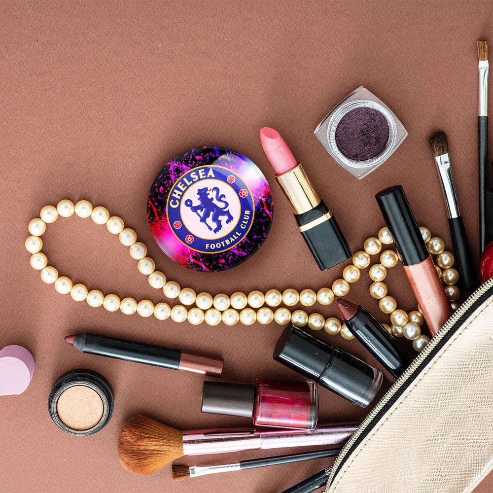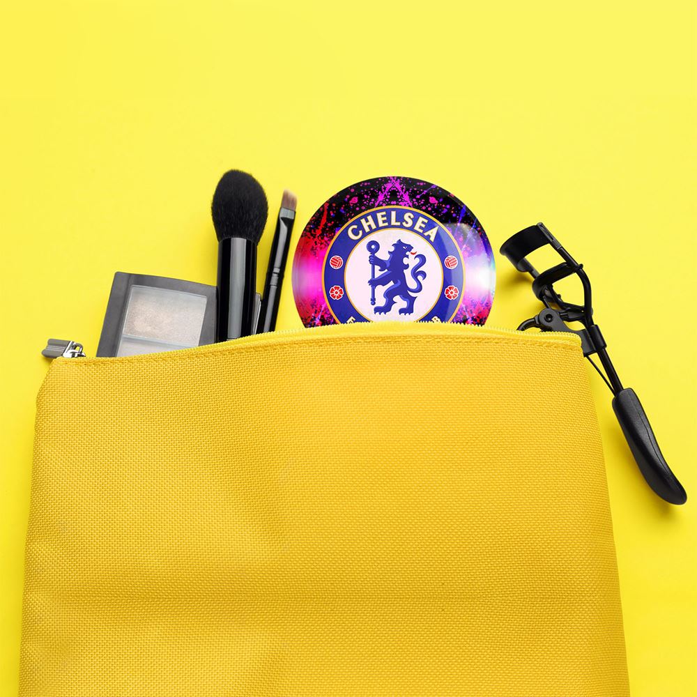 آینه های جیبی باشگاه چلسی خندالو دایره ای به قطر 7.5 سانتی متر می باشد که نه خیلی بزرگ و غیر قابل استفاده در کیف آرایشی ست و نه خیلی کوچک که تصویر خاصی در آن مشاهده نشود. سایزی استاندارد و کارآمد دارد و مناسب قرار گیری در کیف لوازم آرایش و کیف های کوچک دستی نیز هست.