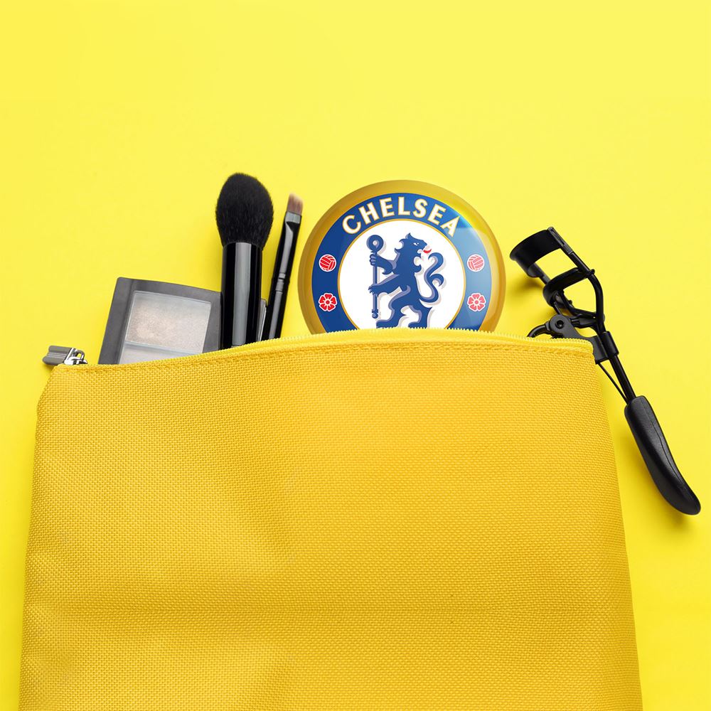 آینه های جیبی باشگاه چلسی Chelsea خندالو دایره ای به قطر 7.5 سانتی متر می باشد که نه خیلی بزرگ و غیر قابل استفاده در کیف آرایشی ست و نه خیلی کوچک که تصویر خاصی در آن مشاهده نشود. سایزی استاندارد و کارآمد دارد و مناسب قرار گیری در کیف لوازم آرایش و کیف های کوچک دستی نیز هست.