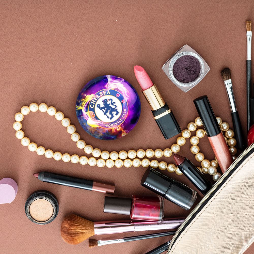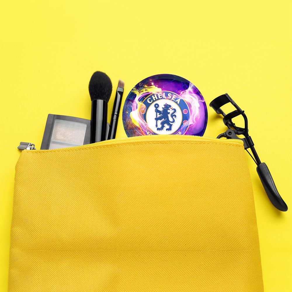 آینه های جیبی باشگاه چلسی Chelsea خندالو دایره ای به قطر 7.5 سانتی متر می باشد که نه خیلی بزرگ و غیر قابل استفاده در کیف آرایشی ست و نه خیلی کوچک که تصویر خاصی در آن مشاهده نشود. سایزی استاندارد و کارآمد دارد و مناسب قرار گیری در کیف لوازم آرایش و کیف های کوچک دستی نیز هست.