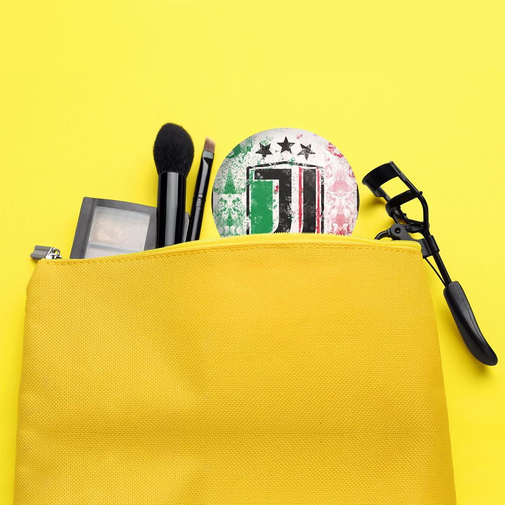 آینه های جیبی باشگاه یوونتوس Juventus خندالو دایره ای به قطر 7.5 سانتی متر می باشد که نه خیلی بزرگ و غیر قابل استفاده در کیف آرایشی ست و نه خیلی کوچک که تصویر خاصی در آن مشاهده نشود. سایزی استاندارد و کارآمد دارد و مناسب قرار گیری در کیف لوازم آرایش و کیف های کوچک دستی نیز هست. بدنه ی آینه جیبی باشگاه یوونتوس Juventus در قسمتی که آینه را در بر گرفته فلزی بوده و ظاهر براق و بسیار زیبایی دارد. چاپ طرح در پشت آینه بوسیله چاپگرهای دیجیتال شش رنگ با شفافیت و کیفیتی مثال زدنی انجام گرفته و با روکش لمینت حرارتی پوشیده شده که در مقابل آسیب و خط و خش مقاوم بوده و کیفیت بالایی دارد. آینه های جیبی باشگاه یوونتوس Juventus خندالو با تنوع طرحی بسیار بالا، سلیقه هر نوع مخاطبی را تامین میکند.