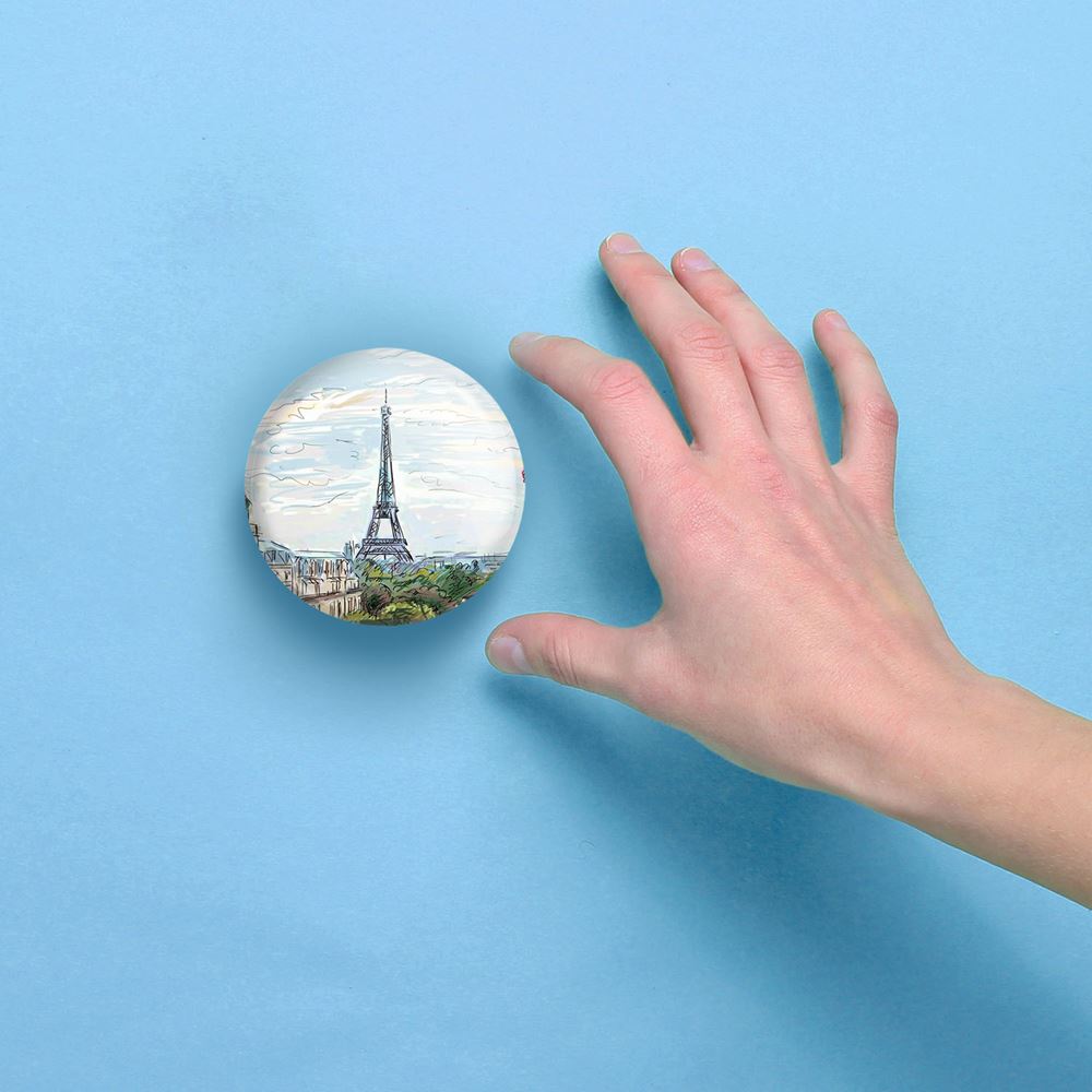 آینه های جیبی برج ایفل خندالو دایره ای به قطر 7.5 سانتی متر می باشد که نه خیلی بزرگ و غیر قابل استفاده در کیف آرایشی ست و نه خیلی کوچک که تصویر خاصی در آن مشاهده نشود. سایزی استاندارد و کارآمد دارد و مناسب قرار گیری در کیف لوازم آرایش و کیف های کوچک دستی نیز هست.