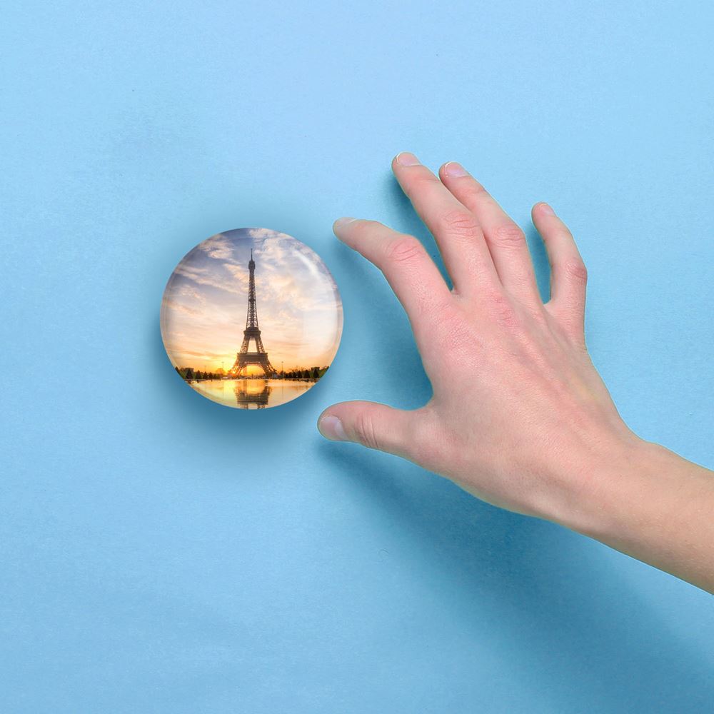 آینه های جیبی برج ایفل خندالو دایره ای به قطر 7.5 سانتی متر می باشد که نه خیلی بزرگ و غیر قابل استفاده در کیف آرایشی ست و نه خیلی کوچک که تصویر خاصی در آن مشاهده نشود. سایزی استاندارد و کارآمد دارد و مناسب قرار گیری در کیف لوازم آرایش و کیف های کوچک دستی نیز هست.