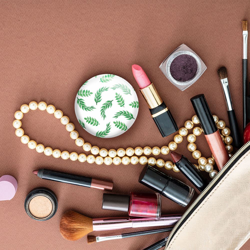 آینه های جیبی برگ خندالو دایره ای به قطر 7.5 سانتی متر می باشد که نه خیلی بزرگ و غیر قابل استفاده در کیف آرایشی ست و نه خیلی کوچک که تصویر خاصی در آن مشاهده نشود. سایزی استاندارد و کارآمد دارد و مناسب قرار گیری در کیف لوازم آرایش و کیف های کوچک دستی نیز هست. بدنه ی آینه جیبی برگ در قسمتی که آینه را در بر گرفته فلزی بوده و ظاهر براق و بسیار زیبایی دارد. چاپ طرح در پشت آینه بوسیله چاپگرهای دیجیتال شش رنگ با شفافیت و کیفیتی مثال زدنی انجام گرفته و با روکش لمینت حرارتی پوشیده شده که در مقابل آسیب و خط و خش مقاوم بوده و کیفیت بالایی دارد. آینه های جیبی برگ خندالو با تنوع طرحی بسیار بالا، سلیقه هر نوع مخاطبی را تامین میکند.