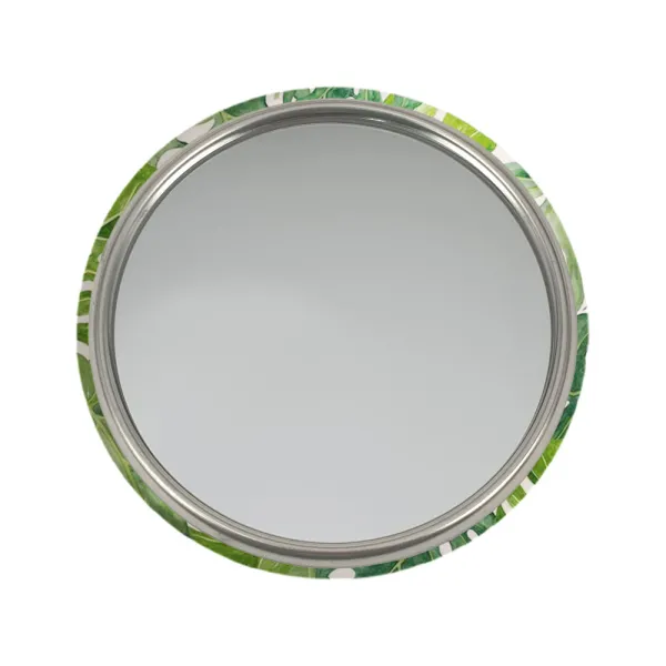 آینه های جیبی برگ انجیری خندالو دایره ای به قطر 7.5 سانتی متر می باشد که نه خیلی بزرگ و غیر قابل استفاده در کیف آرایشی ست و نه خیلی کوچک که تصویر خاصی در آن مشاهده نشود. سایزی استاندارد و کارآمد دارد و مناسب قرار گیری در کیف لوازم آرایش و کیف های کوچک دستی نیز هست.