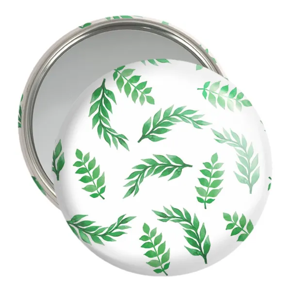 آینه های جیبی برگ خندالو دایره ای به قطر 7.5 سانتی متر می باشد که نه خیلی بزرگ و غیر قابل استفاده در کیف آرایشی ست و نه خیلی کوچک که تصویر خاصی در آن مشاهده نشود. سایزی استاندارد و کارآمد دارد و مناسب قرار گیری در کیف لوازم آرایش و کیف های کوچک دستی نیز هست. بدنه ی آینه جیبی برگ در قسمتی که آینه را در بر گرفته فلزی بوده و ظاهر براق و بسیار زیبایی دارد. چاپ طرح در پشت آینه بوسیله چاپگرهای دیجیتال شش رنگ با شفافیت و کیفیتی مثال زدنی انجام گرفته و با روکش لمینت حرارتی پوشیده شده که در مقابل آسیب و خط و خش مقاوم بوده و کیفیت بالایی دارد. آینه های جیبی برگ خندالو با تنوع طرحی بسیار بالا، سلیقه هر نوع مخاطبی را تامین میکند.
