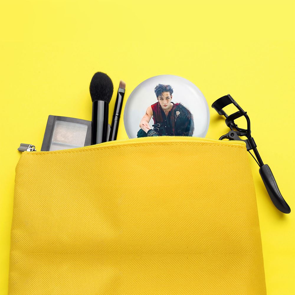 آینه های جیبی بنگ چان گروه استری کیدز Stary Kids خندالو دایره ای به قطر 7.5 سانتی متر می باشد که نه خیلی بزرگ و غیر قابل استفاده در کیف آرایشی ست و نه خیلی کوچک که تصویر خاصی در آن مشاهده نشود. سایزی استاندارد و کارآمد دارد و مناسب قرار گیری در کیف لوازم آرایش و کیف های کوچک دستی نیز هست.