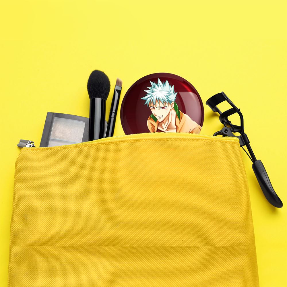 آینه های جیبی بن انیمه هفت گناه کبیره خندالو دایره ای به قطر 7.5 سانتی متر می باشد که نه خیلی بزرگ و غیر قابل استفاده در کیف آرایشی ست و نه خیلی کوچک که تصویر خاصی در آن مشاهده نشود. سایزی استاندارد و کارآمد دارد و مناسب قرار گیری در کیف لوازم آرایش و کیف های کوچک دستی نیز هست.