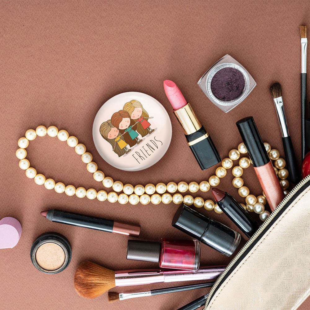 آینه های جیبی بهترین دوستان Best Friends خندالو دایره ای به قطر 7.5 سانتی متر می باشد که نه خیلی بزرگ و غیر قابل استفاده در کیف آرایشی ست و نه خیلی کوچک که تصویر خاصی در آن مشاهده نشود. سایزی استاندارد و کارآمد دارد و مناسب قرار گیری در کیف لوازم آرایش و کیف های کوچک دستی نیز هست.