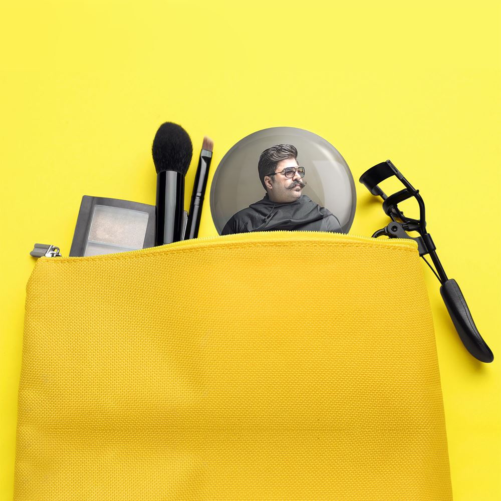آینه های جیبی بهنام بانی خندالو دایره ای به قطر 7.5 سانتی متر می باشد که نه خیلی بزرگ و غیر قابل استفاده در کیف آرایشی ست و نه خیلی کوچک که تصویر خاصی در آن مشاهده نشود. سایزی استاندارد و کارآمد دارد و مناسب قرار گیری در کیف لوازم آرایش و کیف های کوچک دستی نیز هست. بدنه ی آینه جیبی بهنام بانی در قسمتی که آینه را در بر گرفته فلزی بوده و ظاهر براق و بسیار زیبایی دارد. چاپ طرح در پشت آینه بوسیله چاپگرهای دیجیتال شش رنگ با شفافیت و کیفیتی مثال زدنی انجام گرفته و با روکش لمینت حرارتی پوشیده شده که در مقابل آسیب و خط و خش مقاوم بوده و کیفیت بالایی دارد. آینه های جیبی بهنام بانی خندالو با تنوع طرحی بسیار بالا، سلیقه هر نوع مخاطبی را تامین میکند.