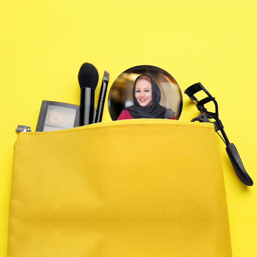 آینه های جیبی بهنوش بختیاری خندالو دایره ای به قطر 7.5 سانتی متر می باشد که نه خیلی بزرگ و غیر قابل استفاده در کیف آرایشی ست و نه خیلی کوچک که تصویر خاصی در آن مشاهده نشود. سایزی استاندارد و کارآمد دارد و مناسب قرار گیری در کیف لوازم آرایش و کیف های کوچک دستی نیز هست. بدنه ی آینه جیبی بهنوش بختیاری در قسمتی که آینه را در بر گرفته فلزی بوده و ظاهر براق و بسیار زیبایی دارد. چاپ طرح در پشت آینه بوسیله چاپگرهای دیجیتال شش رنگ با شفافیت و کیفیتی مثال زدنی انجام گرفته و با روکش لمینت حرارتی پوشیده شده که در مقابل آسیب و خط و خش مقاوم بوده و کیفیت بالایی دارد. آینه های جیبی بهنوش بختیاری خندالو با تنوع طرحی بسیار بالا، سلیقه هر نوع مخاطبی را تامین میکند.