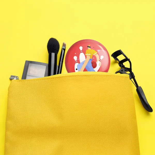 آینه های جیبی بولینگ Bowling خندالو دایره ای به قطر 7.5 سانتی متر می باشد که نه خیلی بزرگ و غیر قابل استفاده در کیف آرایشی ست و نه خیلی کوچک که تصویر خاصی در آن مشاهده نشود. سایزی استاندارد و کارآمد دارد و مناسب قرار گیری در کیف لوازم آرایش و کیف های کوچک دستی نیز هست.